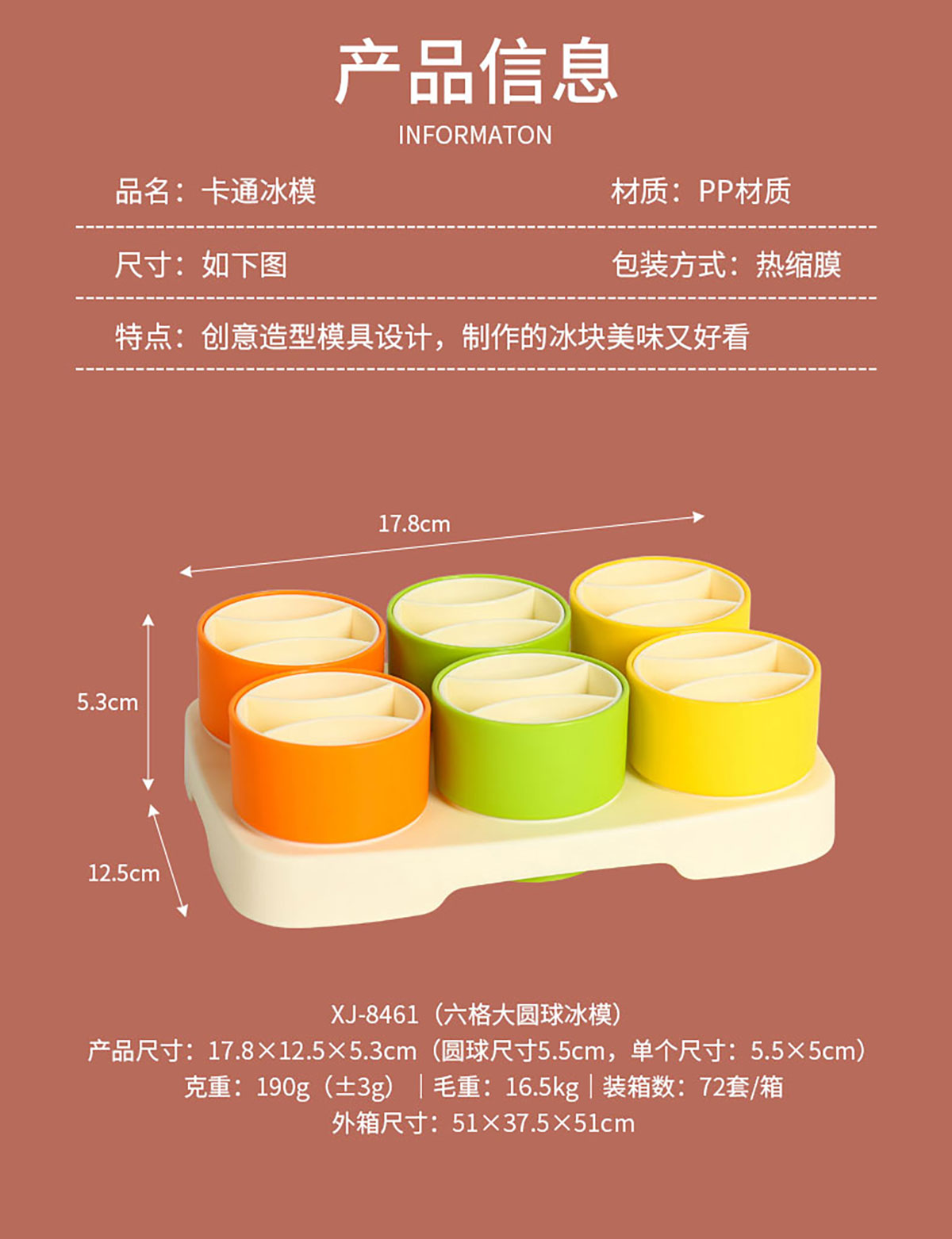 HH-XJ8461(六格大圓球):178*125*53(圓球直徑55mm 單個(gè)尺寸:55*50mm)