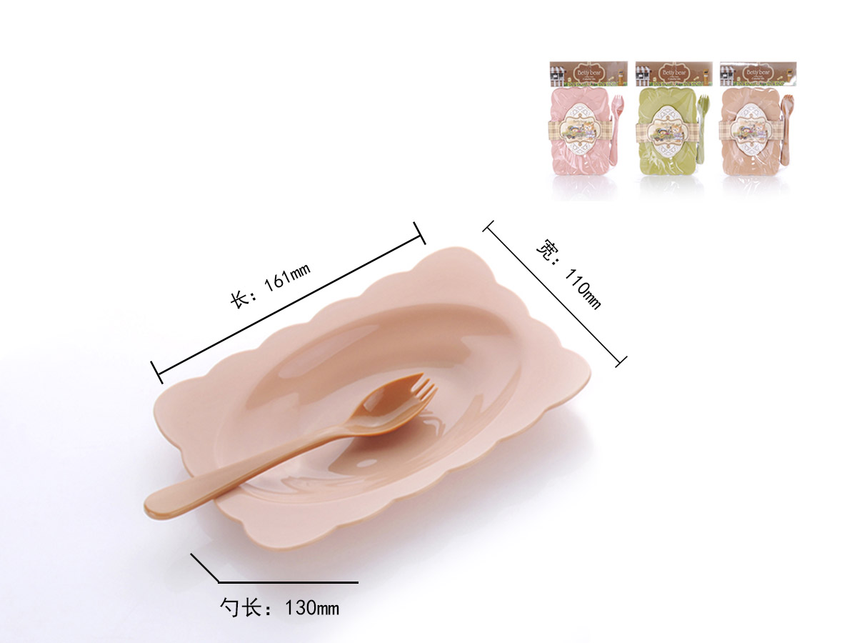 得力熊歐式小號(hào)花邊長(zhǎng)方餐盤(4pcs)( 配4pcs叉匙)