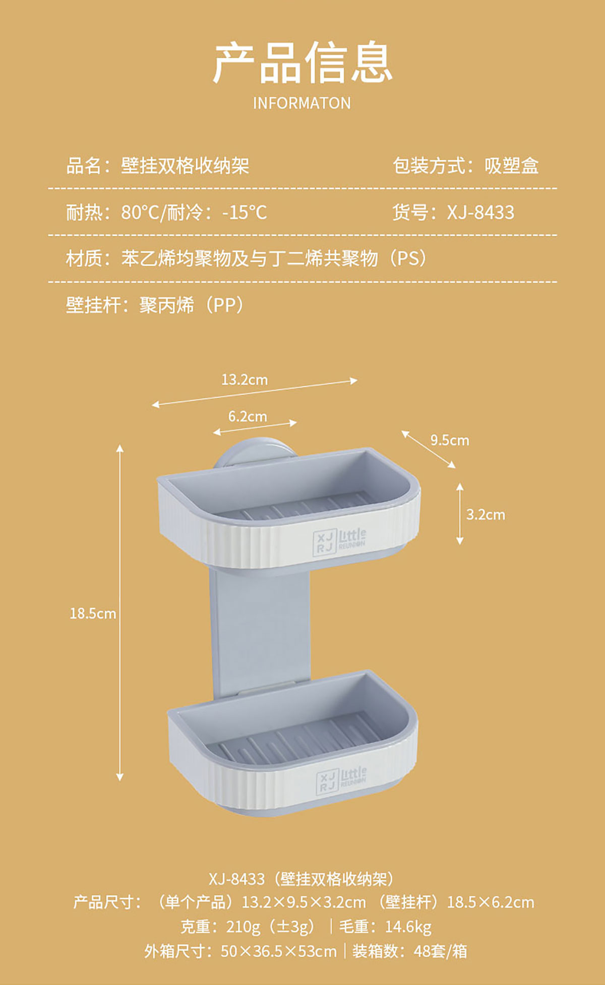 Size: 單個產(chǎn)品:132*95*32mm 壁掛桿:185*62mm 吸塑盒包裝:257*170*50mm