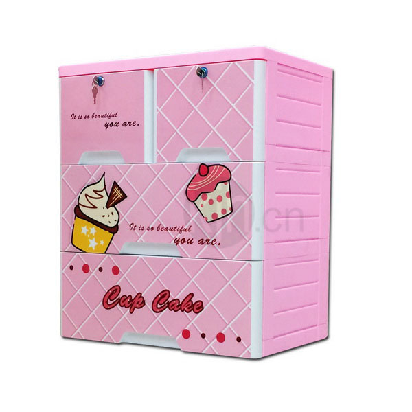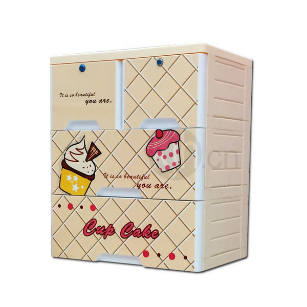 三層整理柜-帶鎖(蛋糕派)