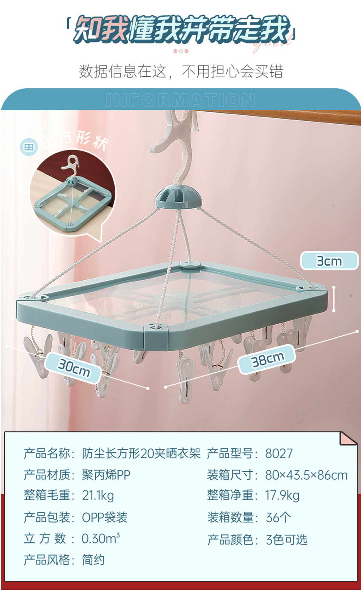 防塵長方形20夾晾衣架 2023年新色