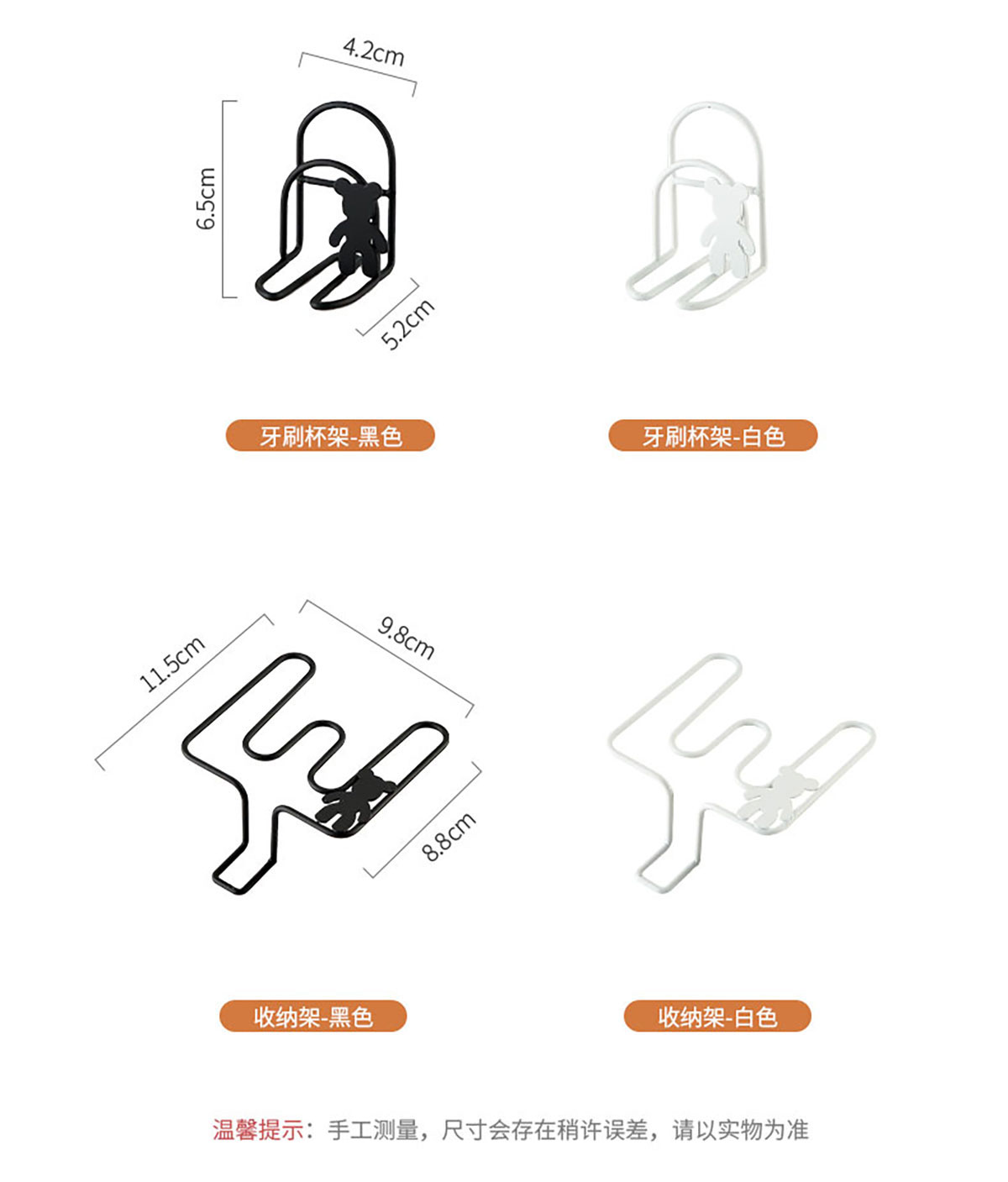 Size: 牙刷架:47*47*95mm 牙刷杯架:42*52*65mm 收納架:98*88*115mm