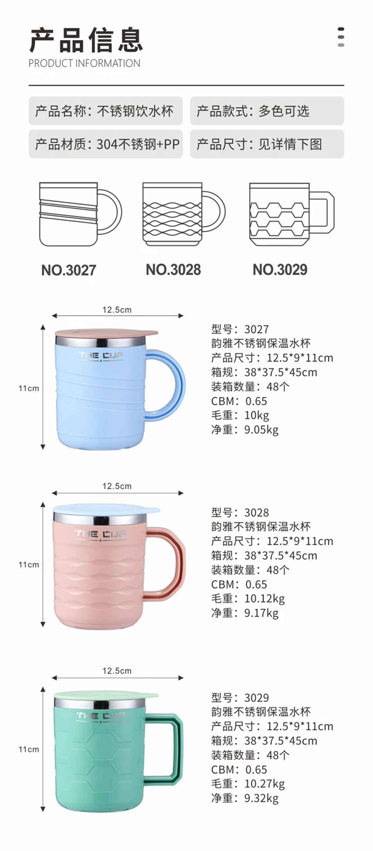 清雅不銹鋼保溫水杯