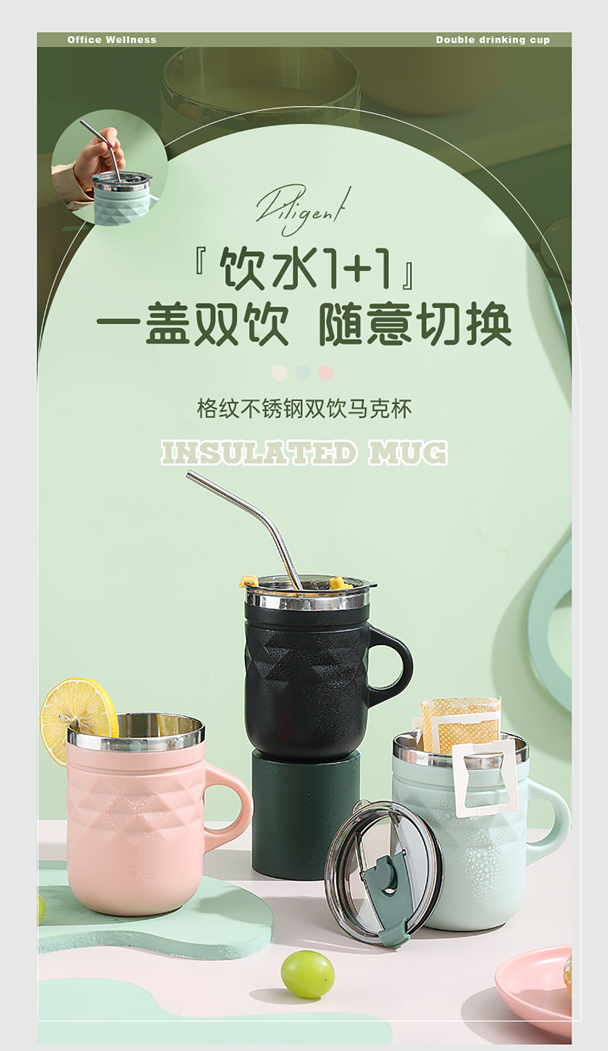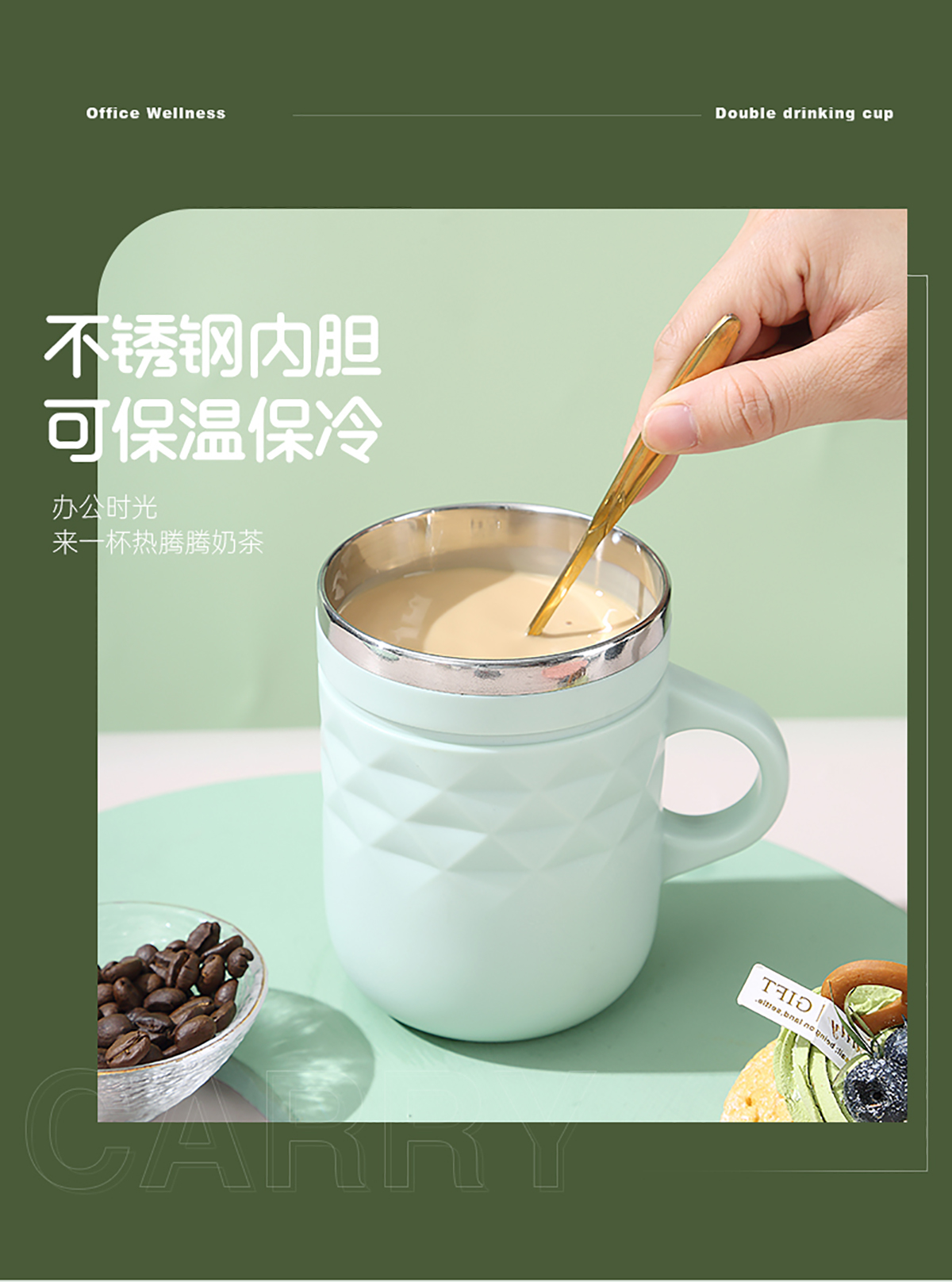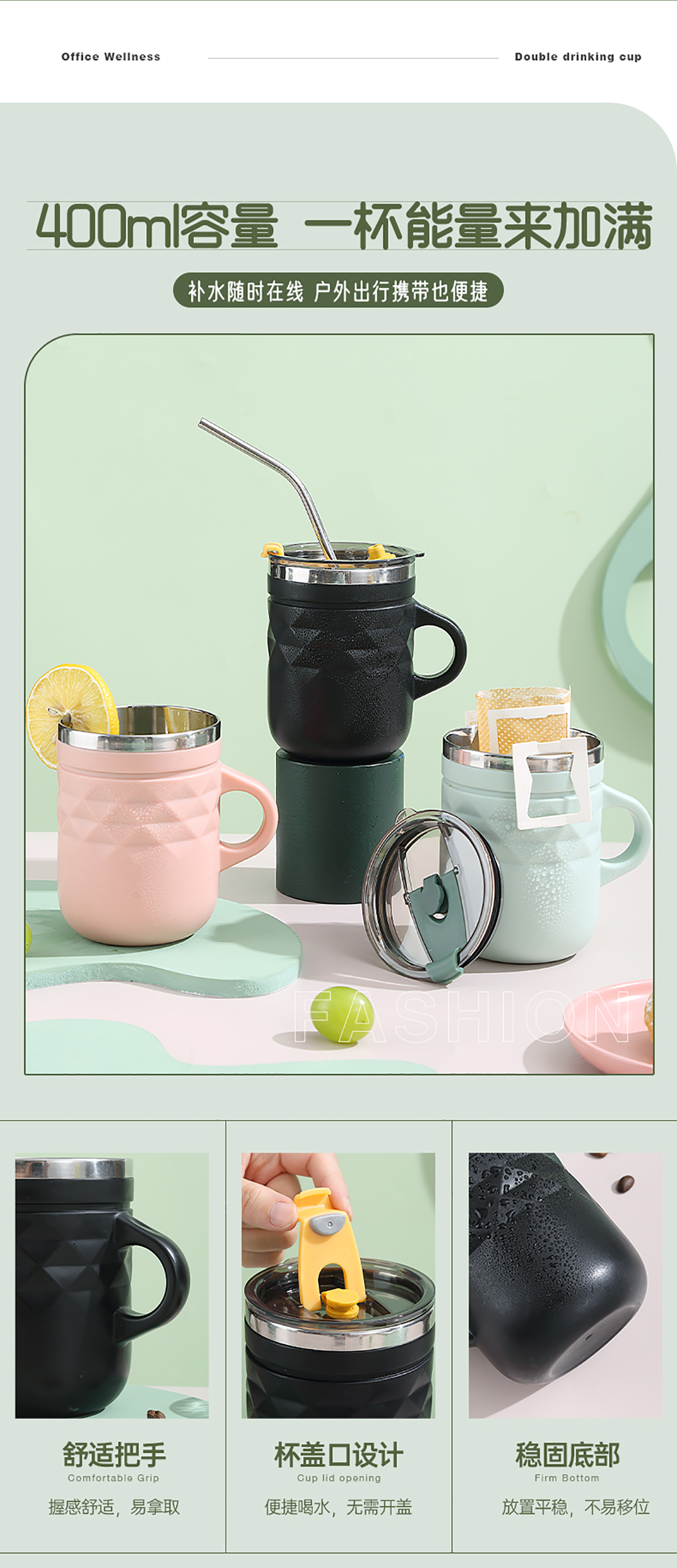 格紋不銹鋼雙飲杯400ml