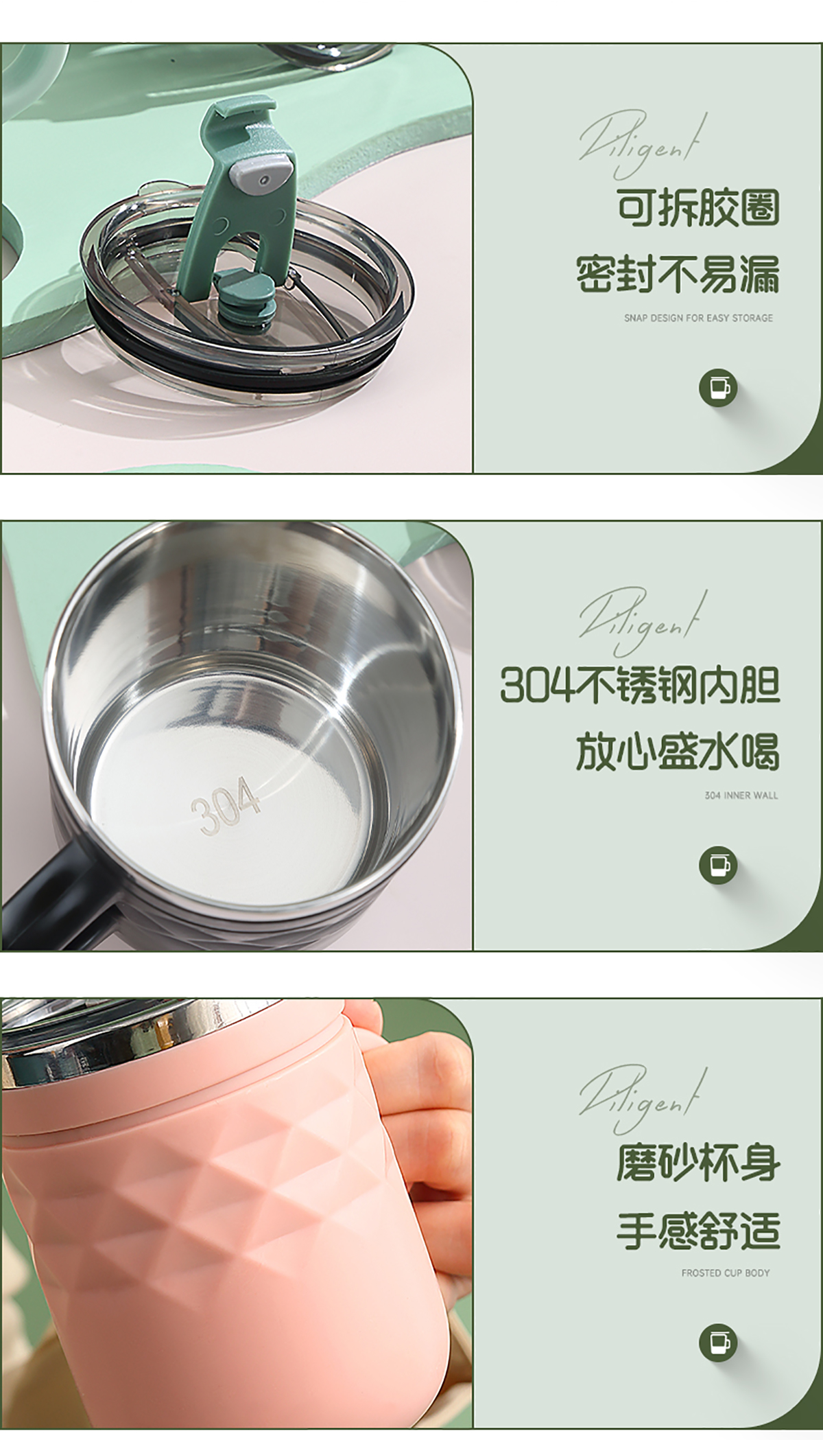 Stuff:304不銹鋼+外杯PP+蓋AS+硅膠圈/彩盒