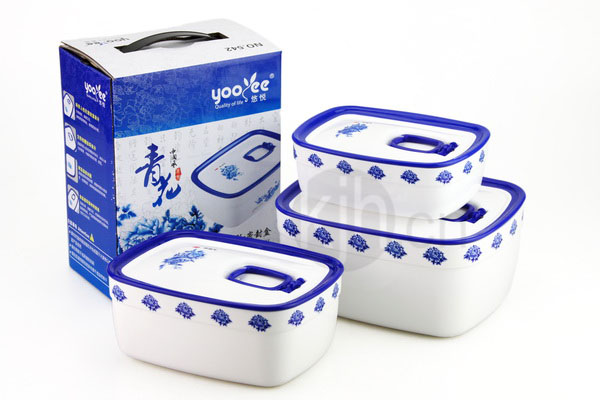 青花長(zhǎng)方形保鮮盒三套莊