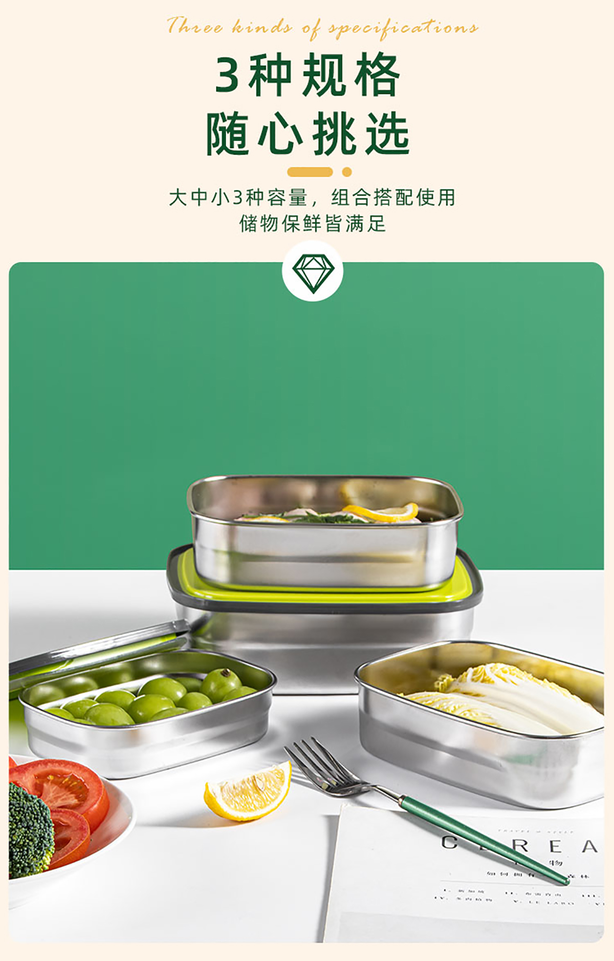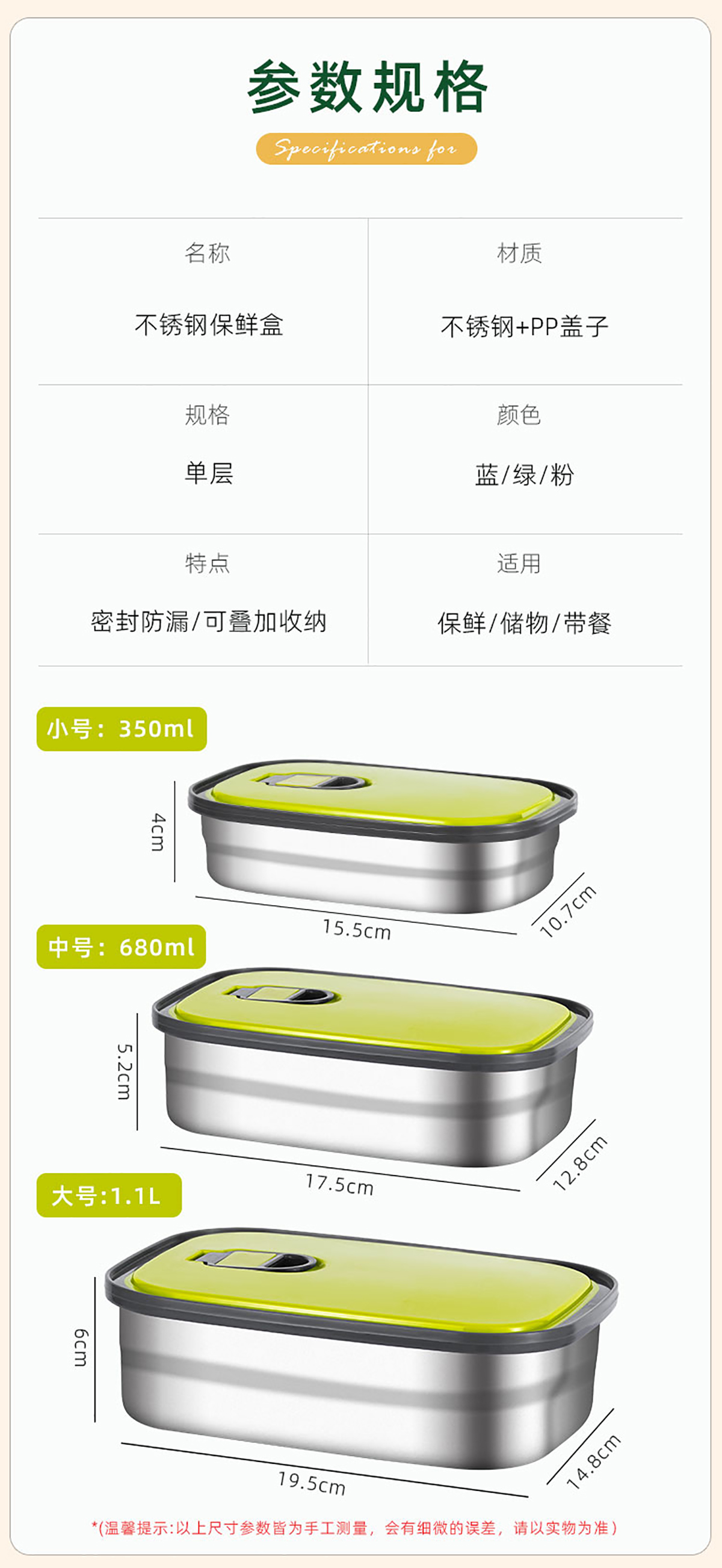 長方形不銹鋼保鮮盒(小/中/大)