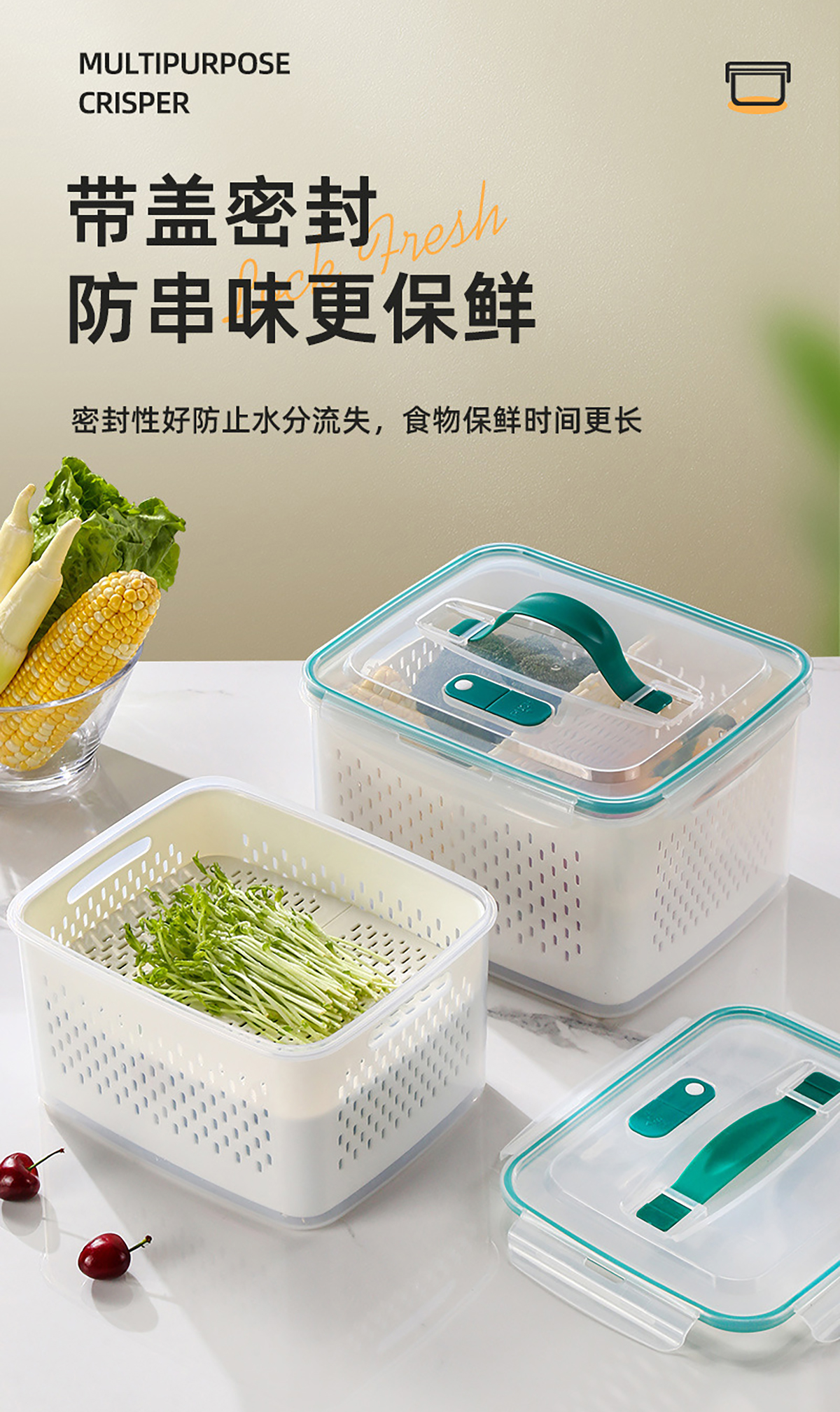 三件套/四件套/五件套手提密封分格瀝水保鮮盒