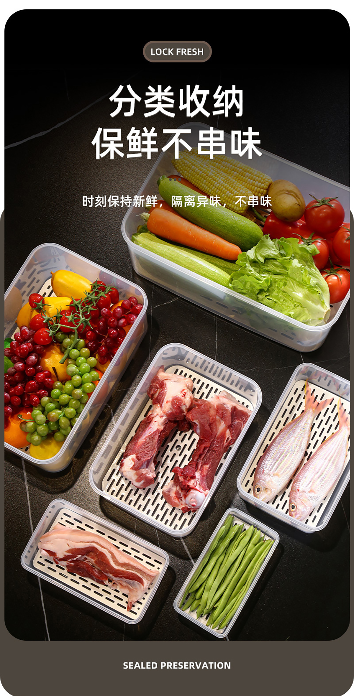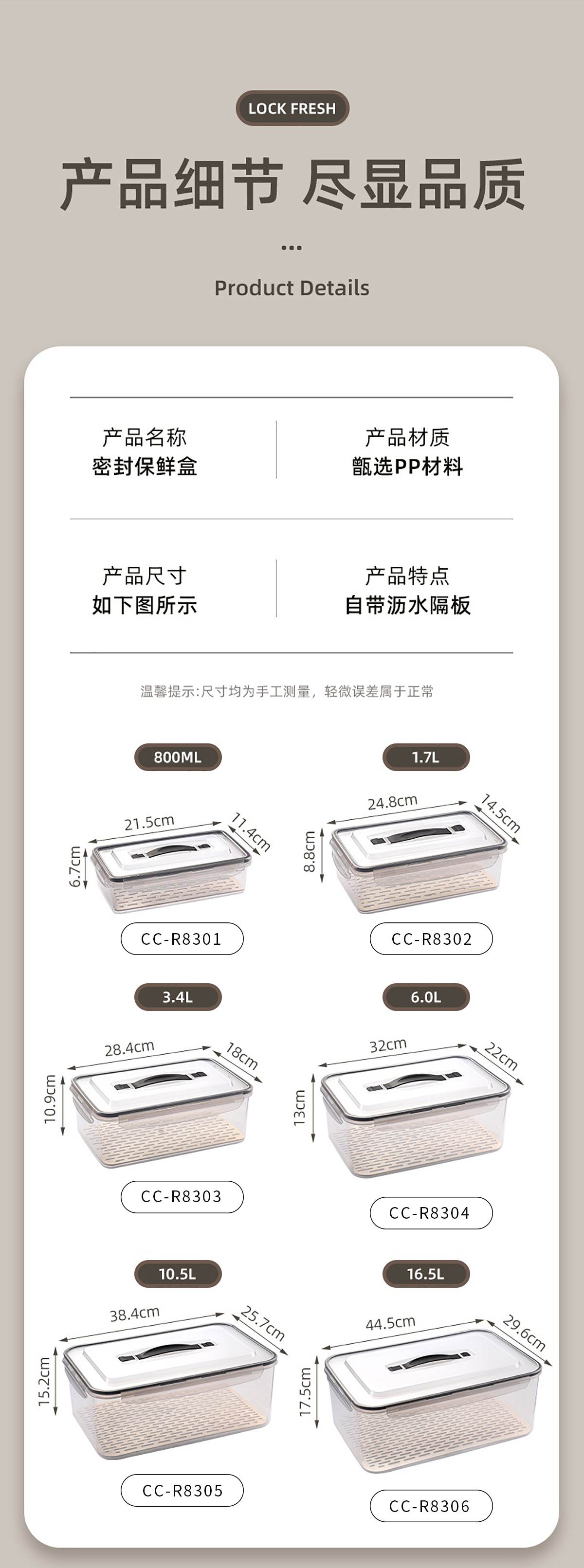 手提密封瀝水板保鮮盒(800nl/1.7L/3.4L/6.0L/10.5L/16.5L)