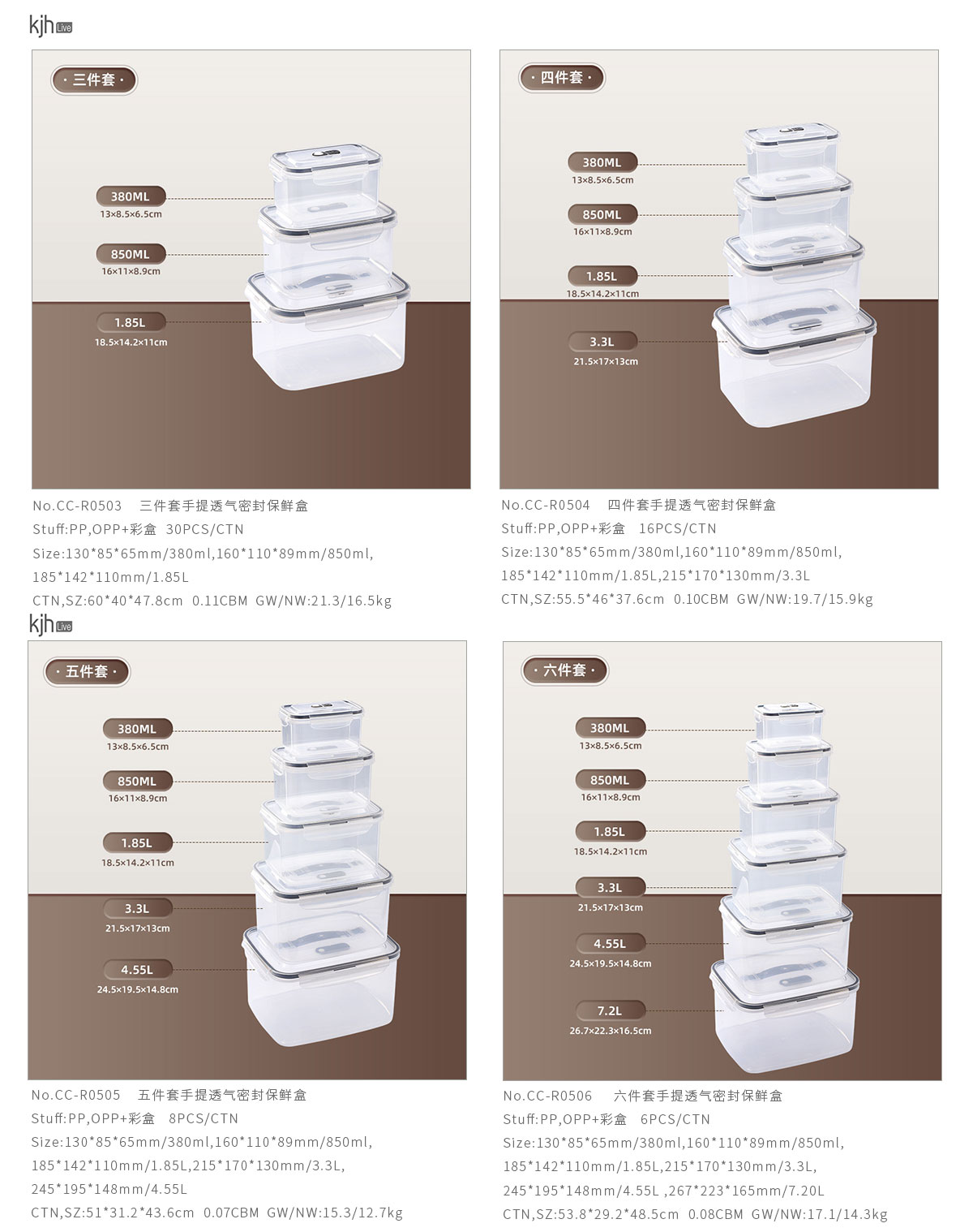 三件/四件/五件/六件/七件/九件/十一件套手提透氣密封保鮮盒