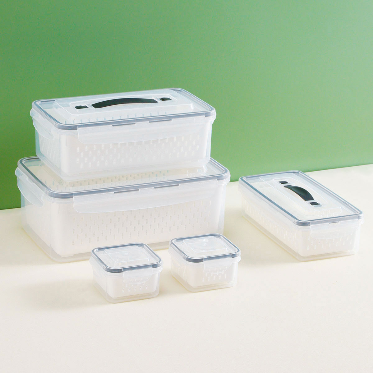 三/四/五件套手提瀝水板保鮮盒