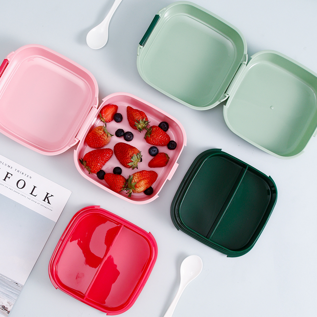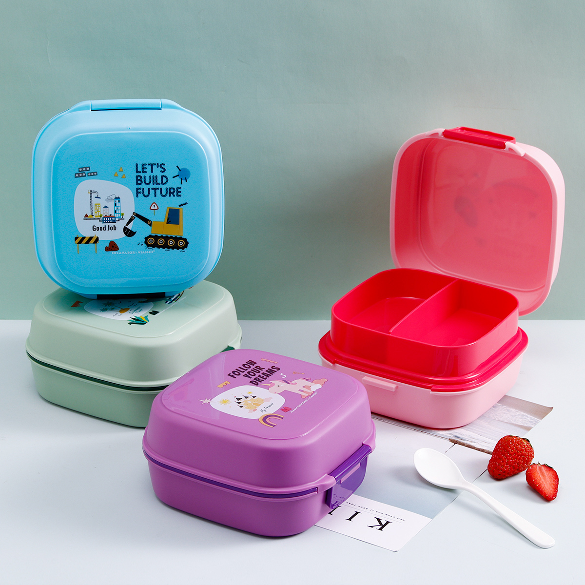 童彩翻蓋便當(dāng)盒+運(yùn)動水壺套裝(長方形/正方形1000ml+水杯350ml)