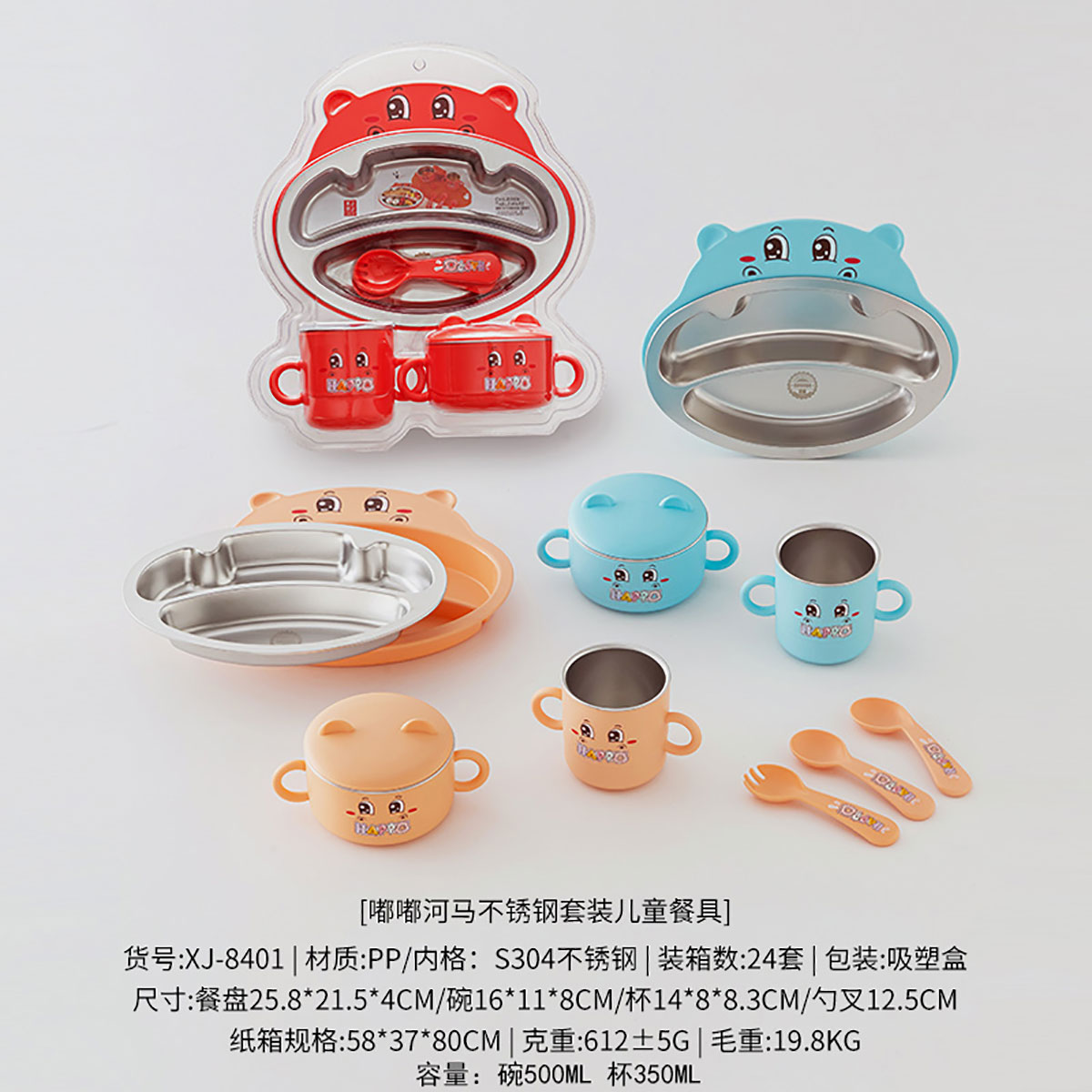 嘟嘟河馬不銹鋼套裝兒童餐具