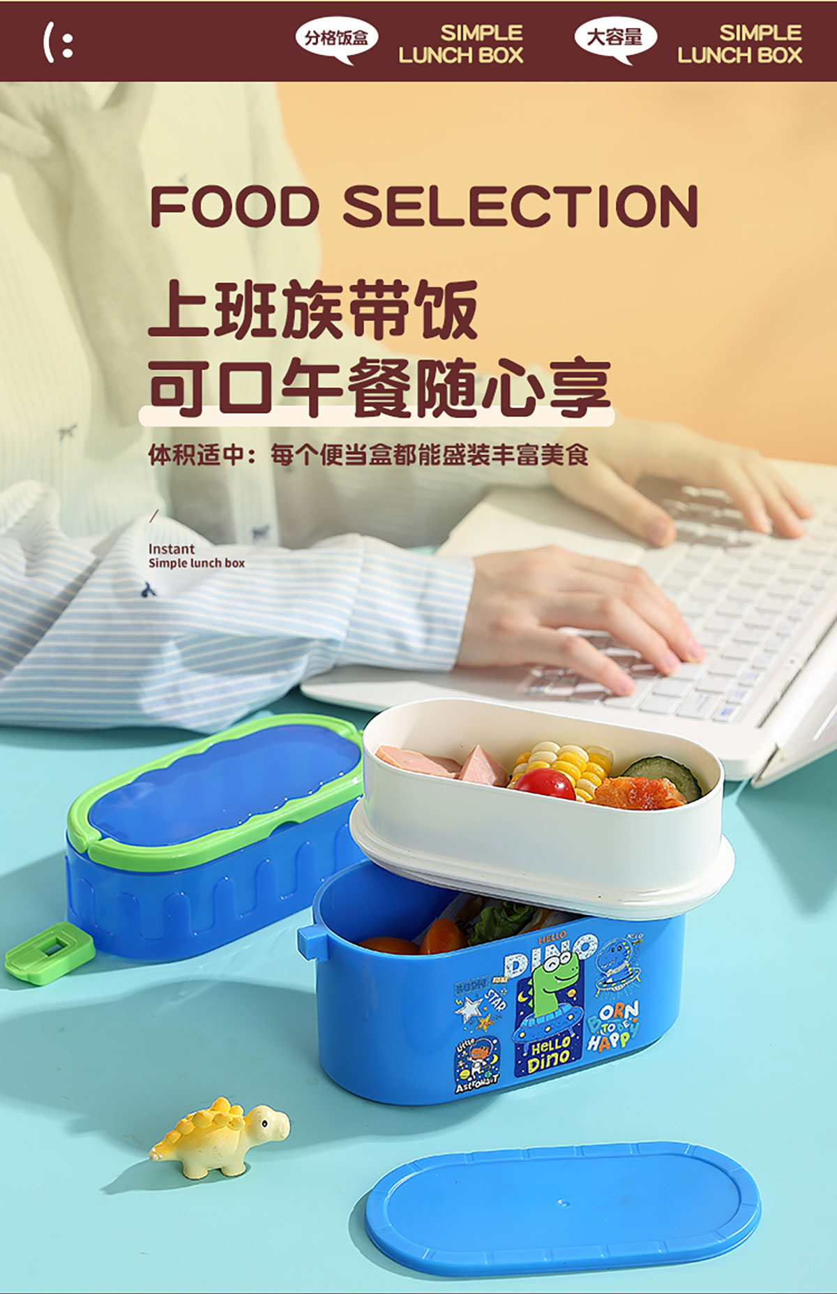 卡通雙層密封餐盒(橢圓形)950ml+PP勺