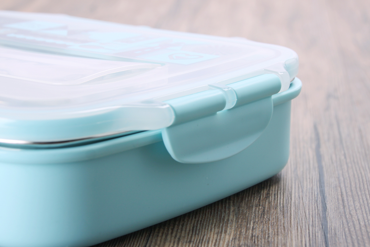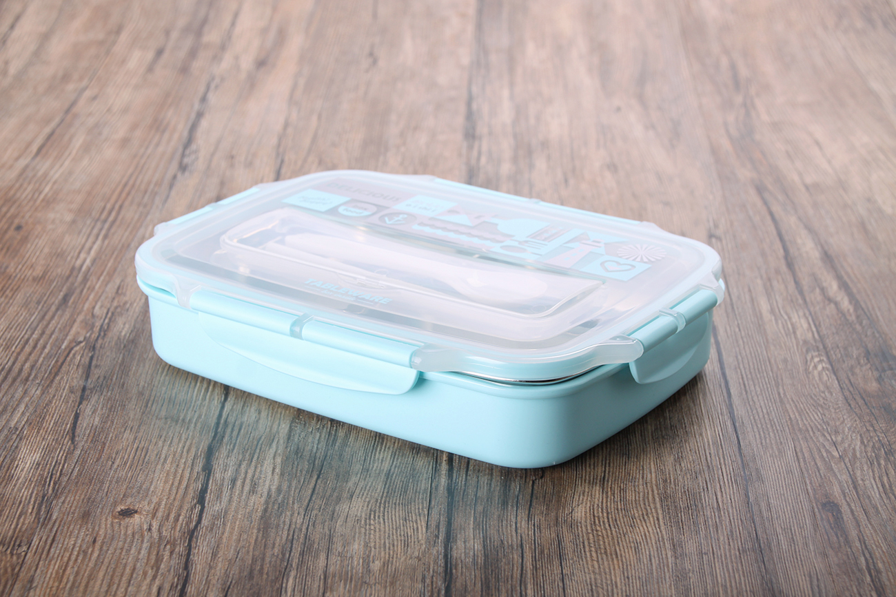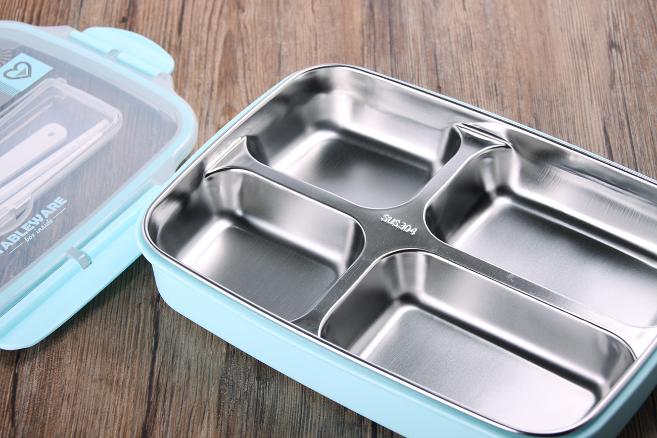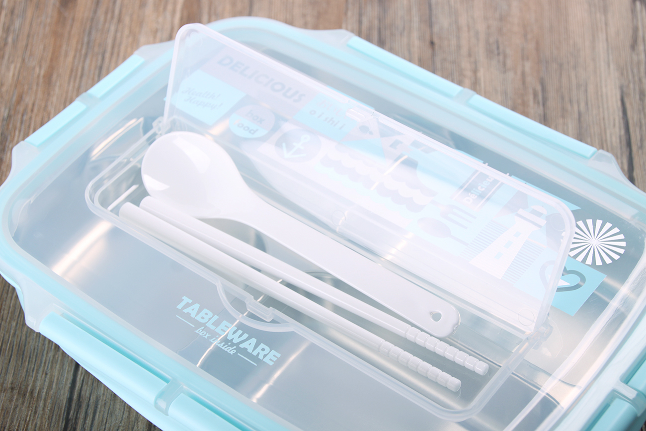 好味方形四格密封不銹鋼飯盒(餐具款)