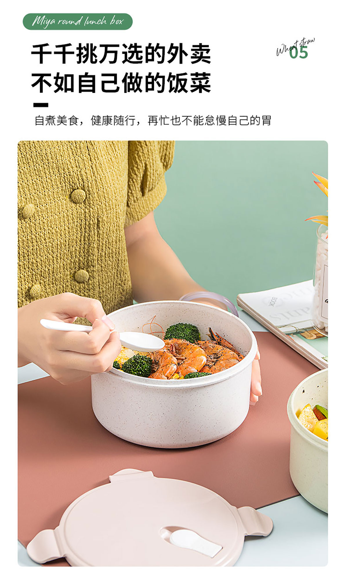 蜜雅圓形便當(dāng)盒(1280ml)