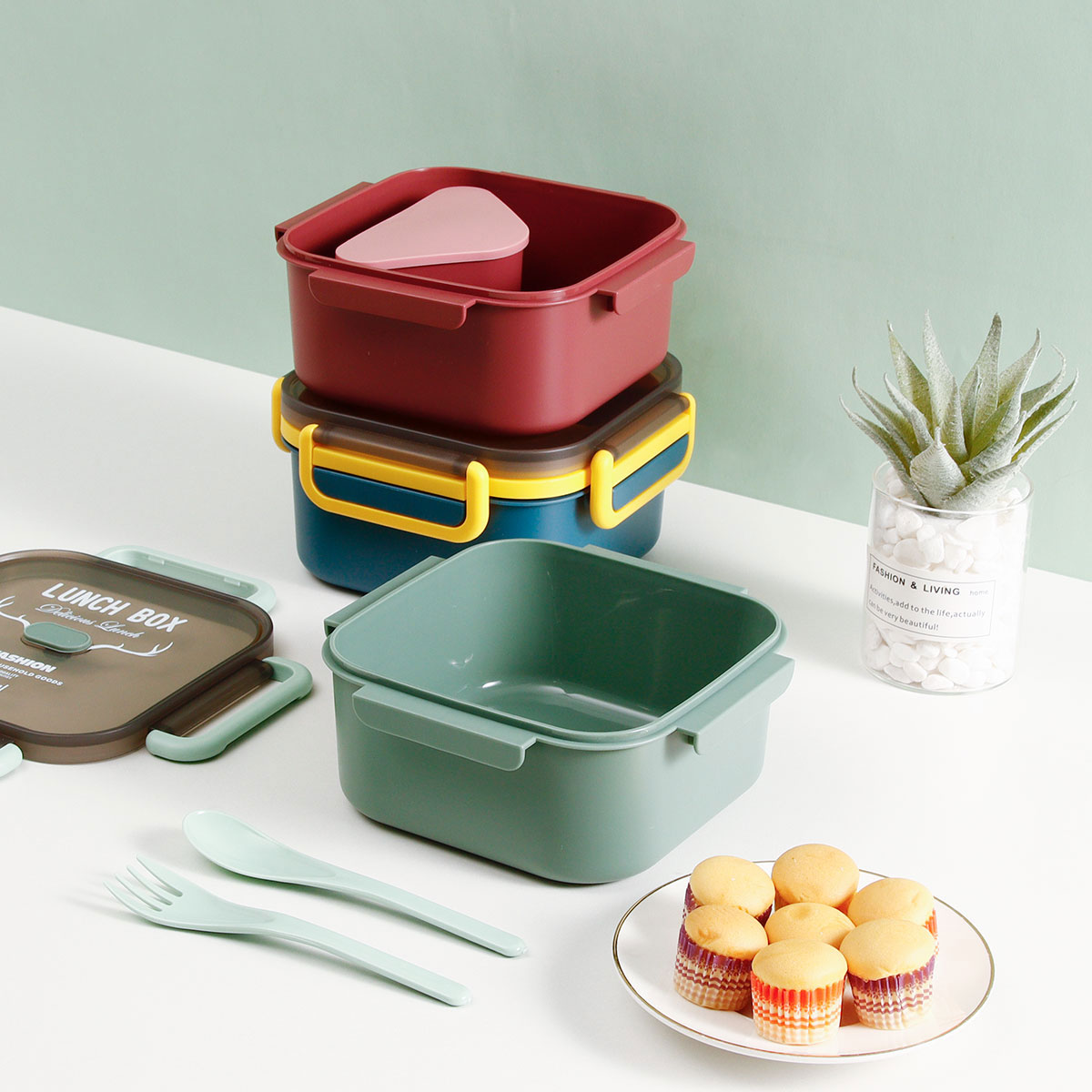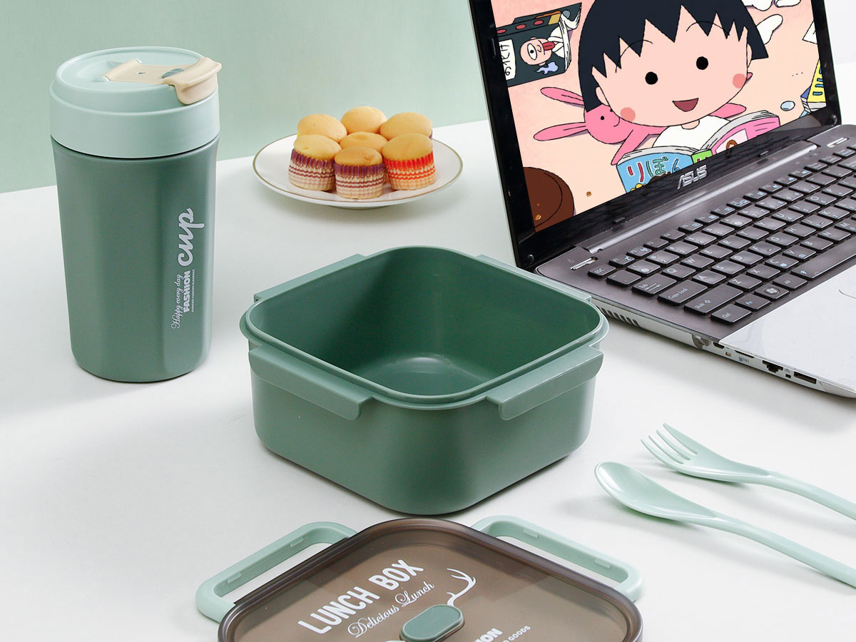 正方雙層/單層密封飯盒+圓形/八角隨行杯