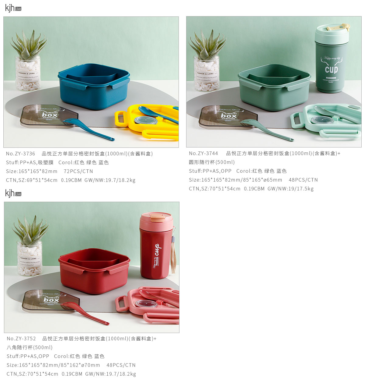 品悅正方單層分格/單層分格(含醬料盒)密封飯盒+圓形/八角隨行杯