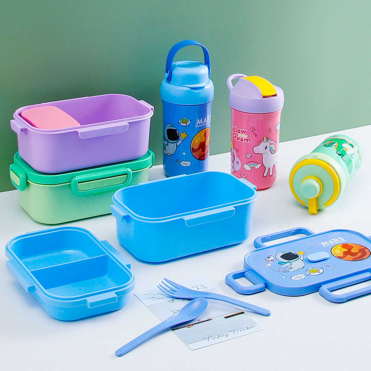 卡通長方單層(含格子)/雙層飯盒+翻蓋吸嘴/旋蓋運(yùn)動/翻蓋運(yùn)動水壺