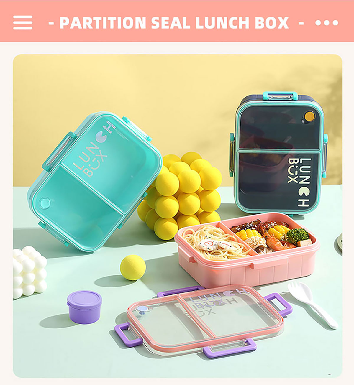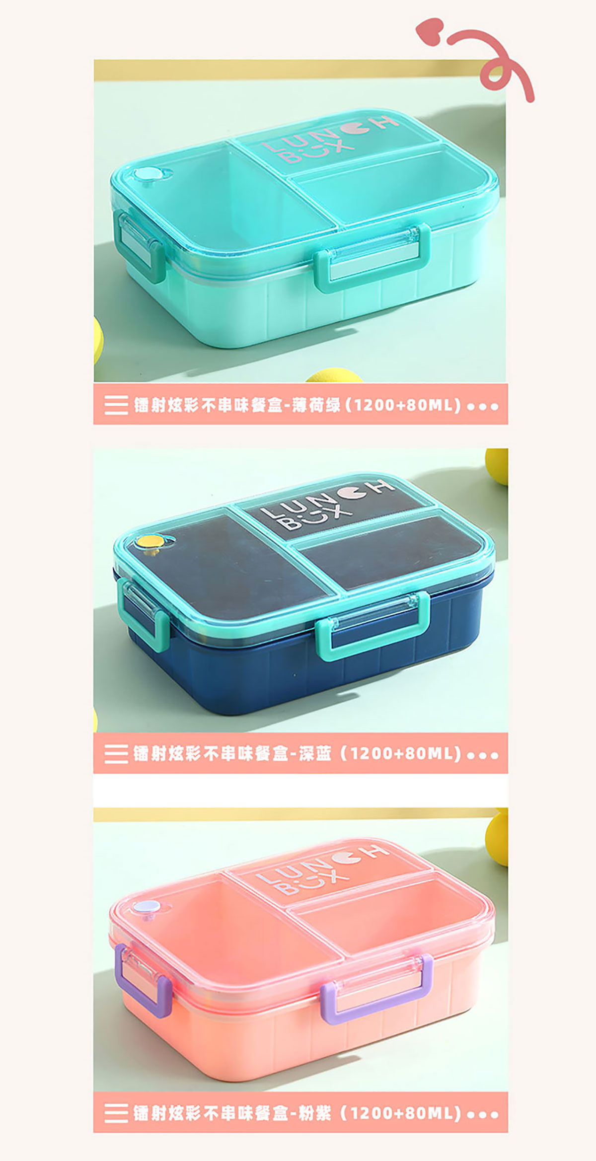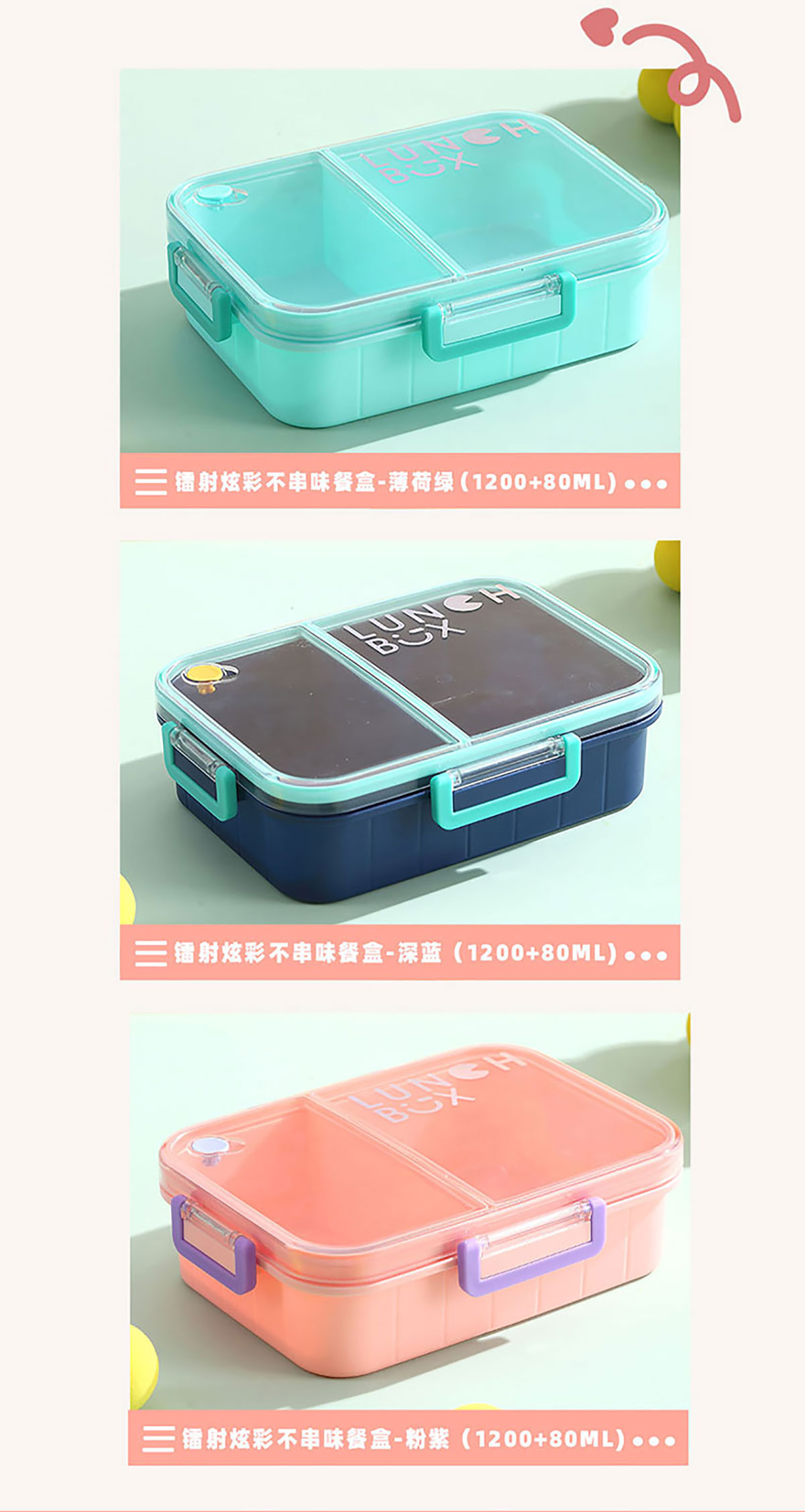 鐳射炫彩不串味餐盒(塑料2格1200ml/3格1200ml+醬料杯80ml)