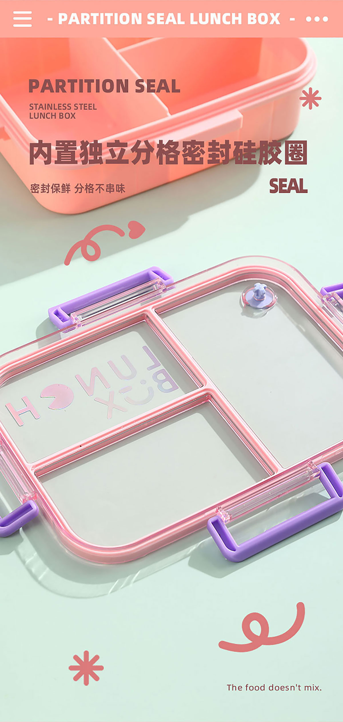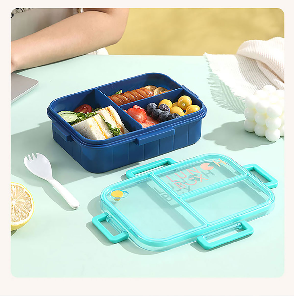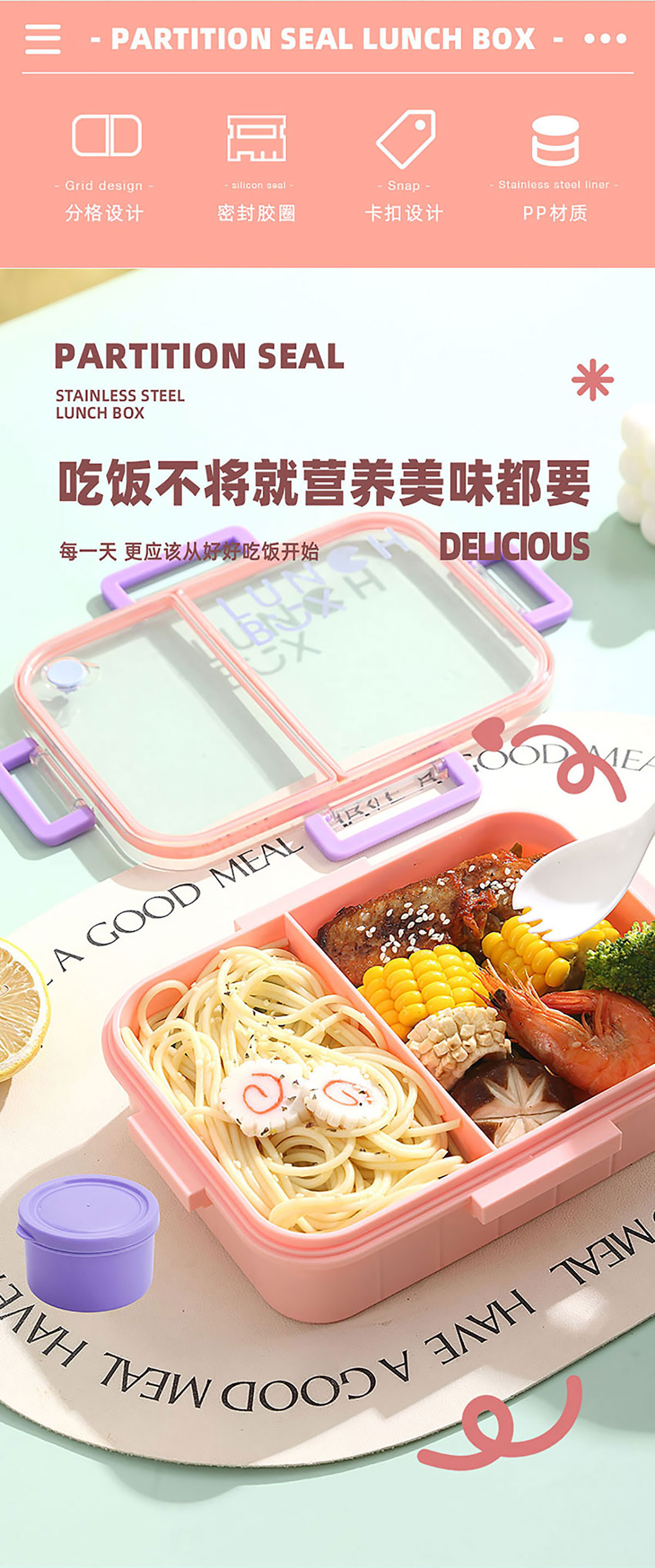鐳射炫彩不串味餐盒(塑料2格1200ml/3格1200ml+醬料杯80ml)