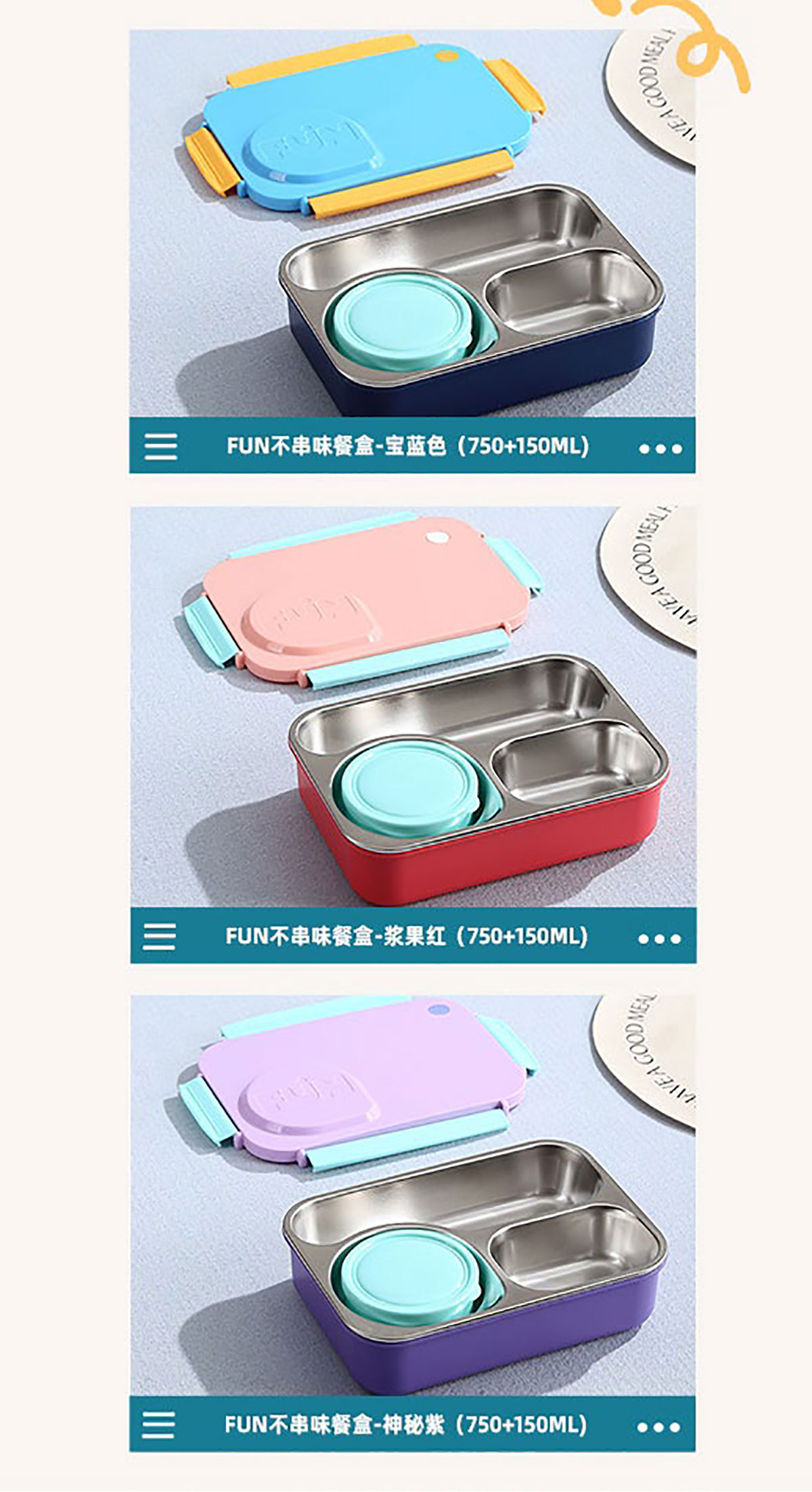 Size: AQX-2655:215*165*70mm/+塑料碗150ml AQX-2656:215*165*70mm/+不銹鋼碗150ml