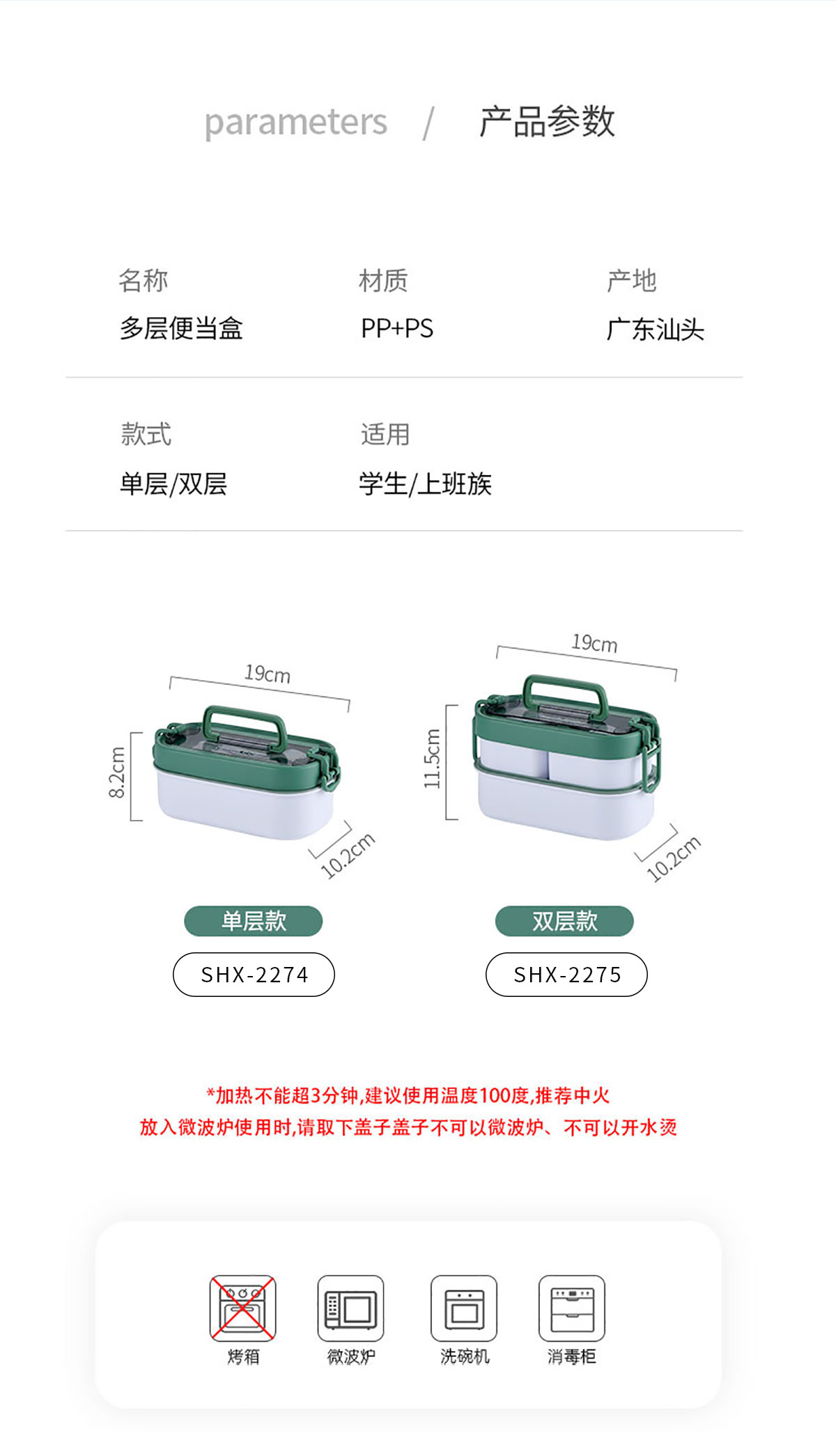 Size: SHX-2274(單層):190*102*82mm SHX-2275(雙層):190*102*115mm