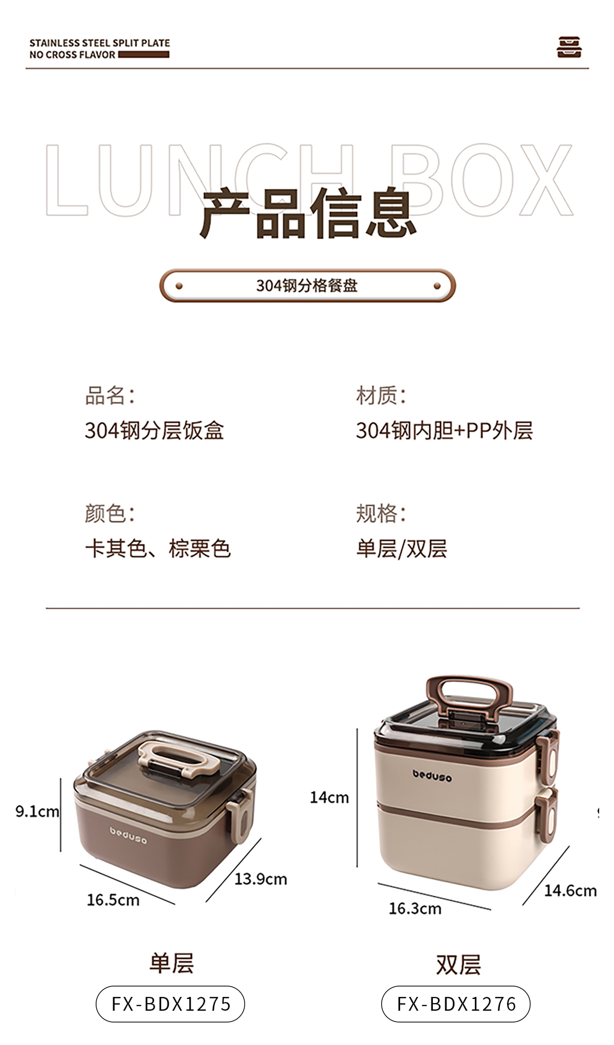 Size: FX-BDX1275(單層二格):165*139*91mm/700ml FX-BDX1276(雙層四格):163*146*140mm/1200ml