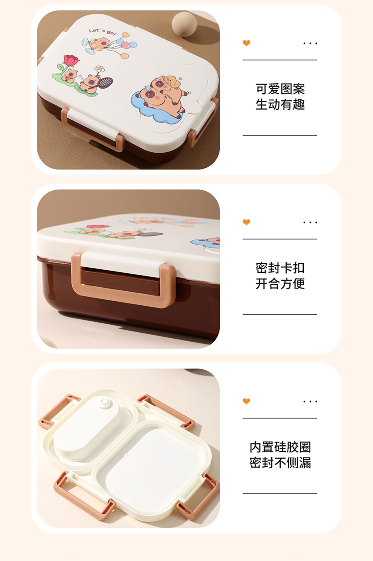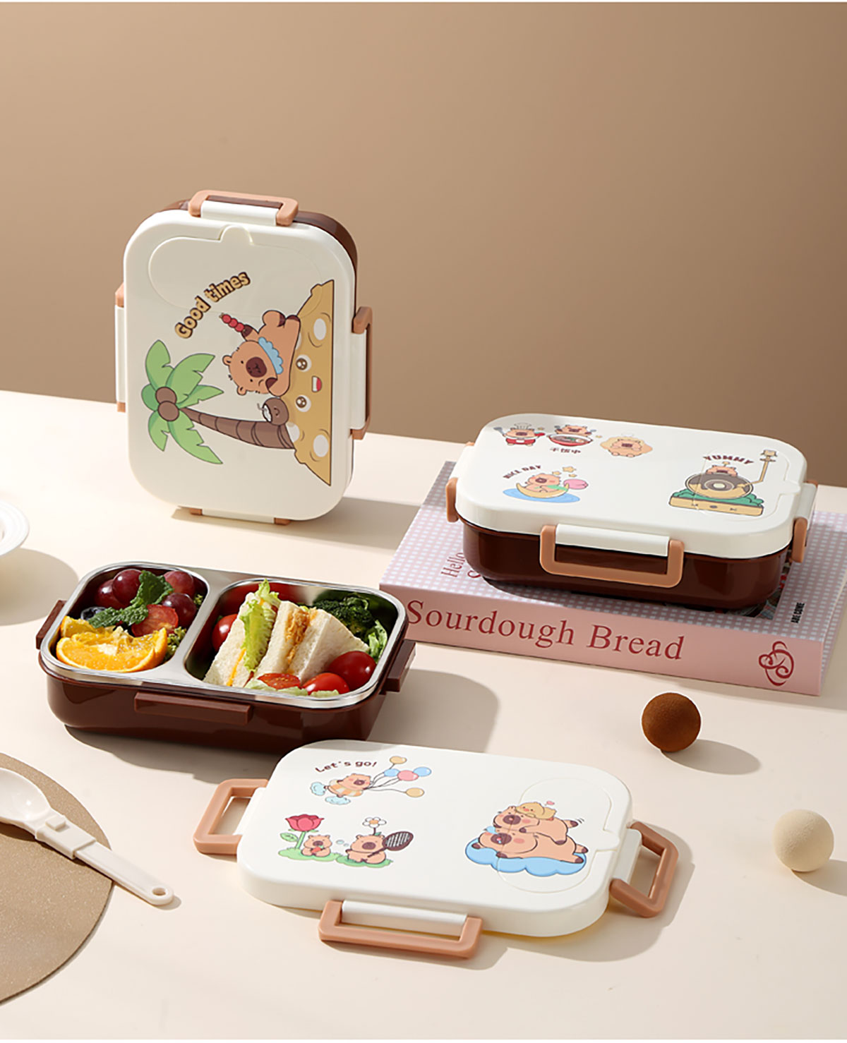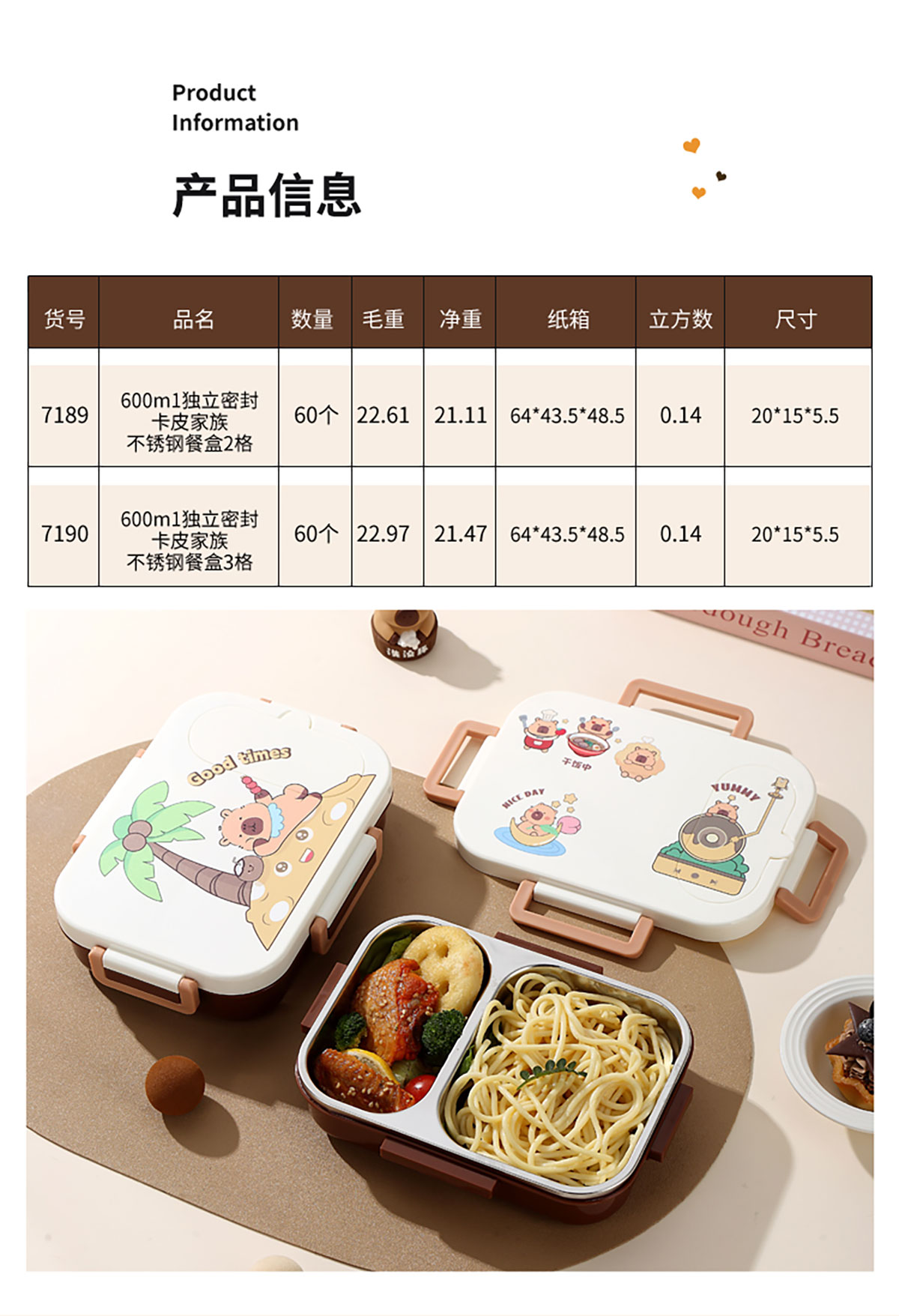 600ml UV獨(dú)立密封卡皮家族不銹鋼餐盒2格/3格 (配PP折疊湯勺)