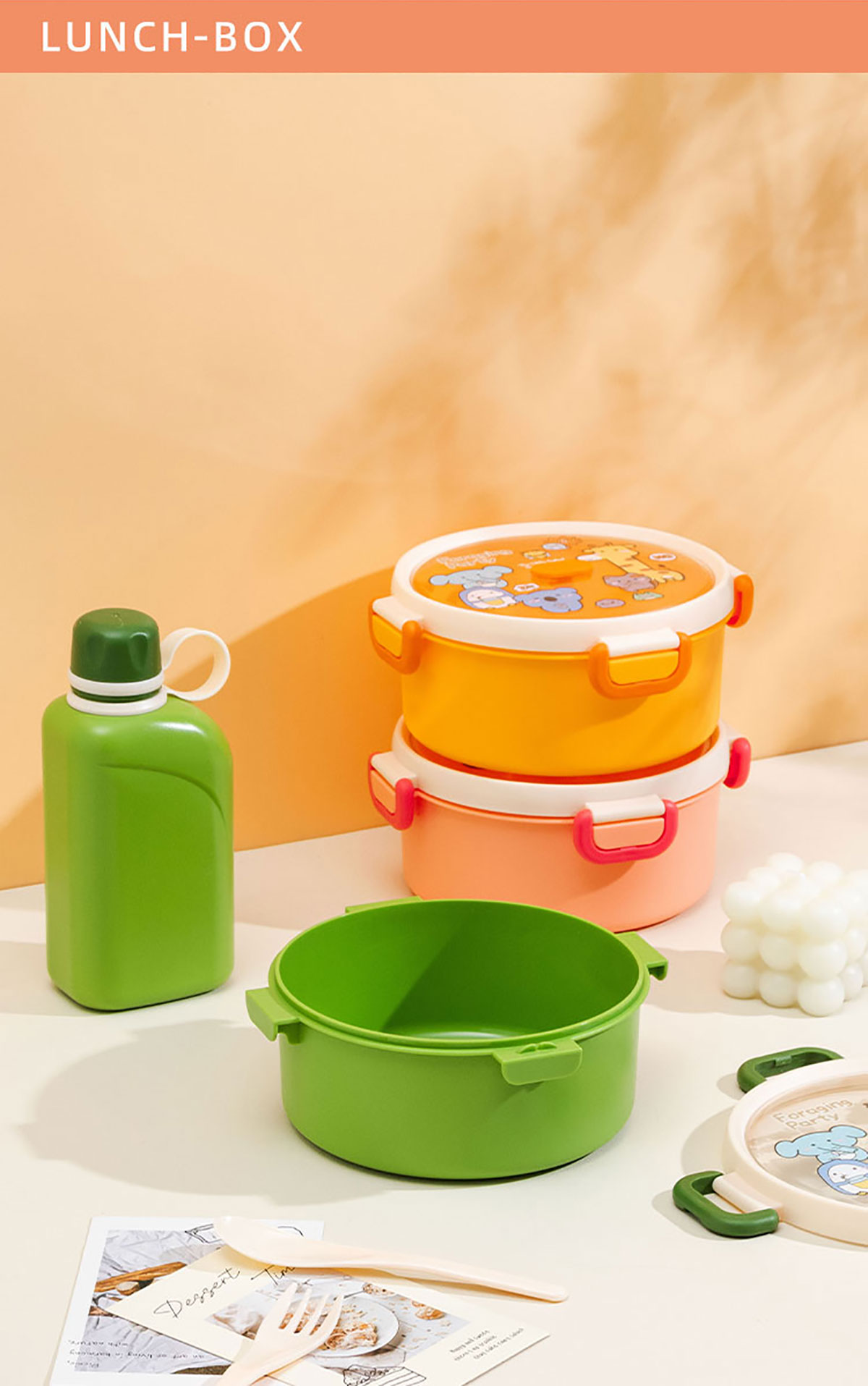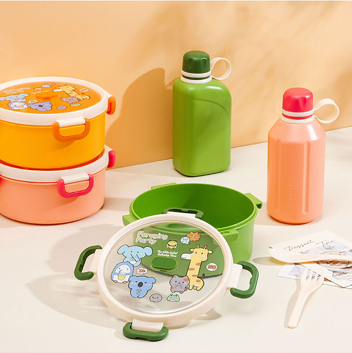 尚趣圓形單層飯盒(1000ml)/+圓形/方形運動水壺(500ml)