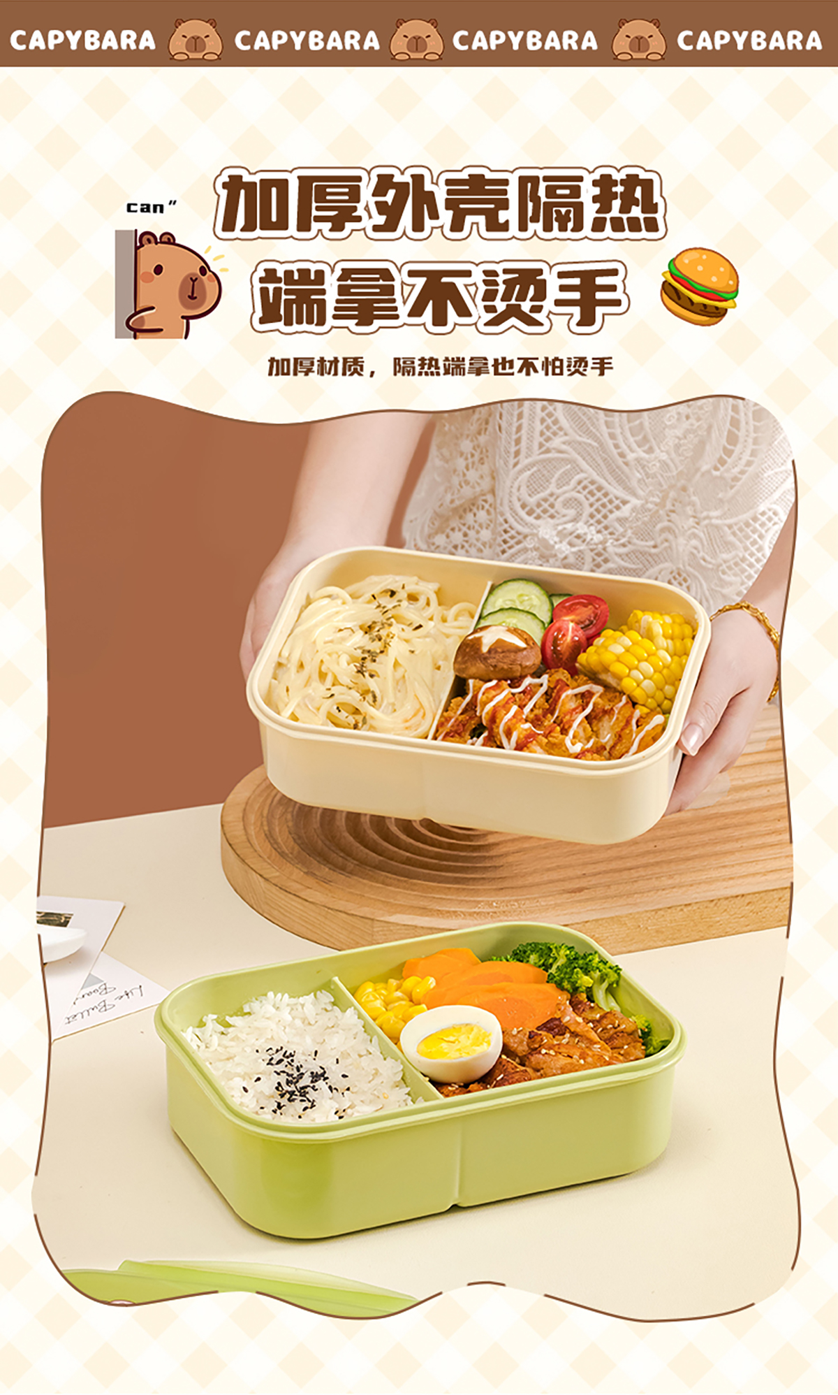 小號(hào)800ml/大號(hào)1000ml方形飯盒
