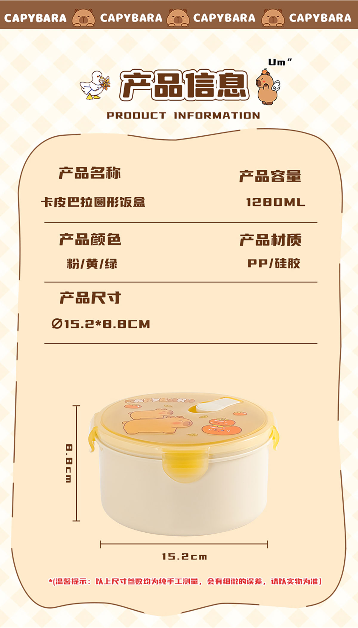 Size: 165*165*87mm/1280ml