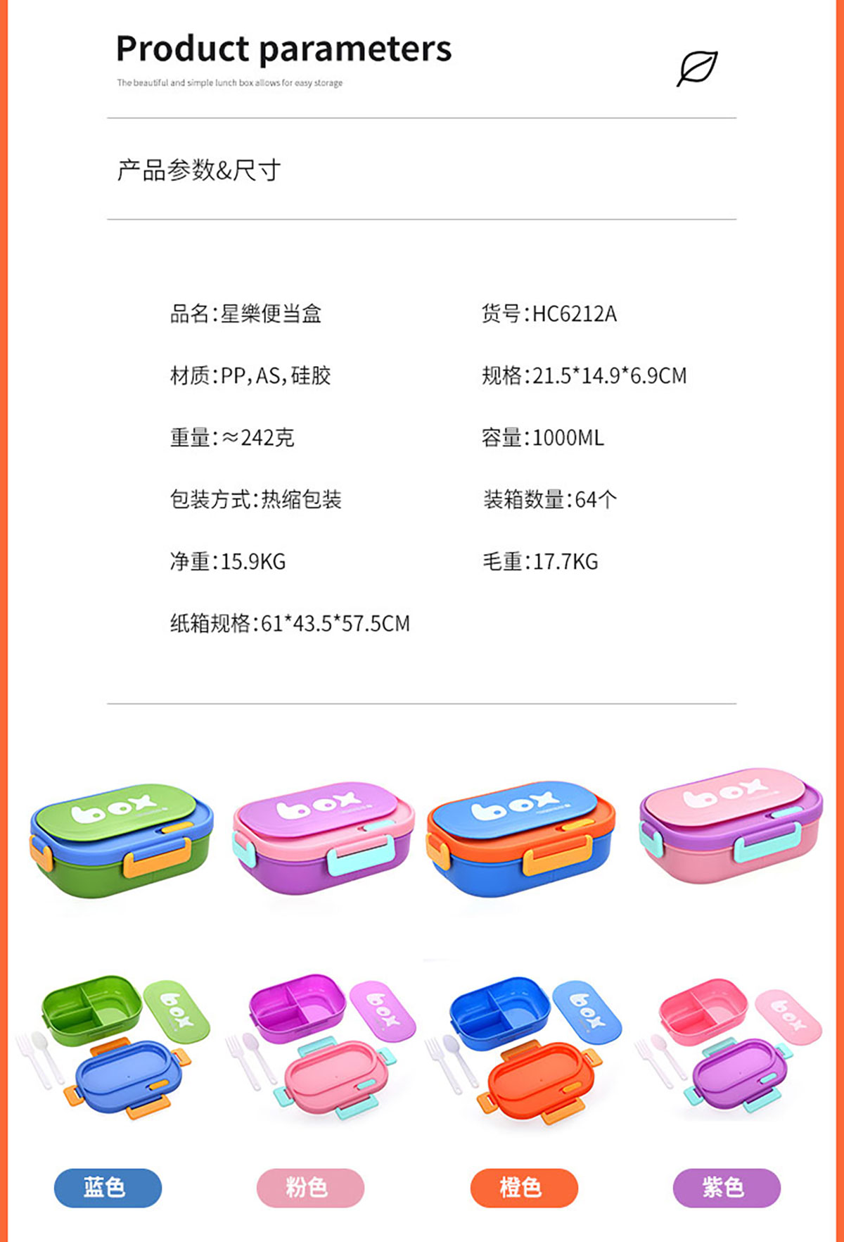 Size: SWY-HC6212A(三格PP款):215*149*69mm/1000ml