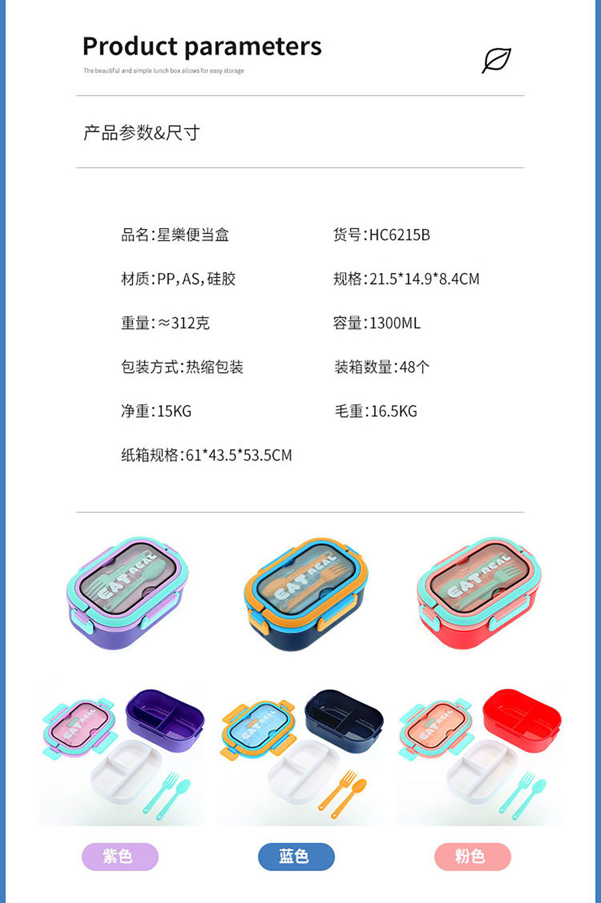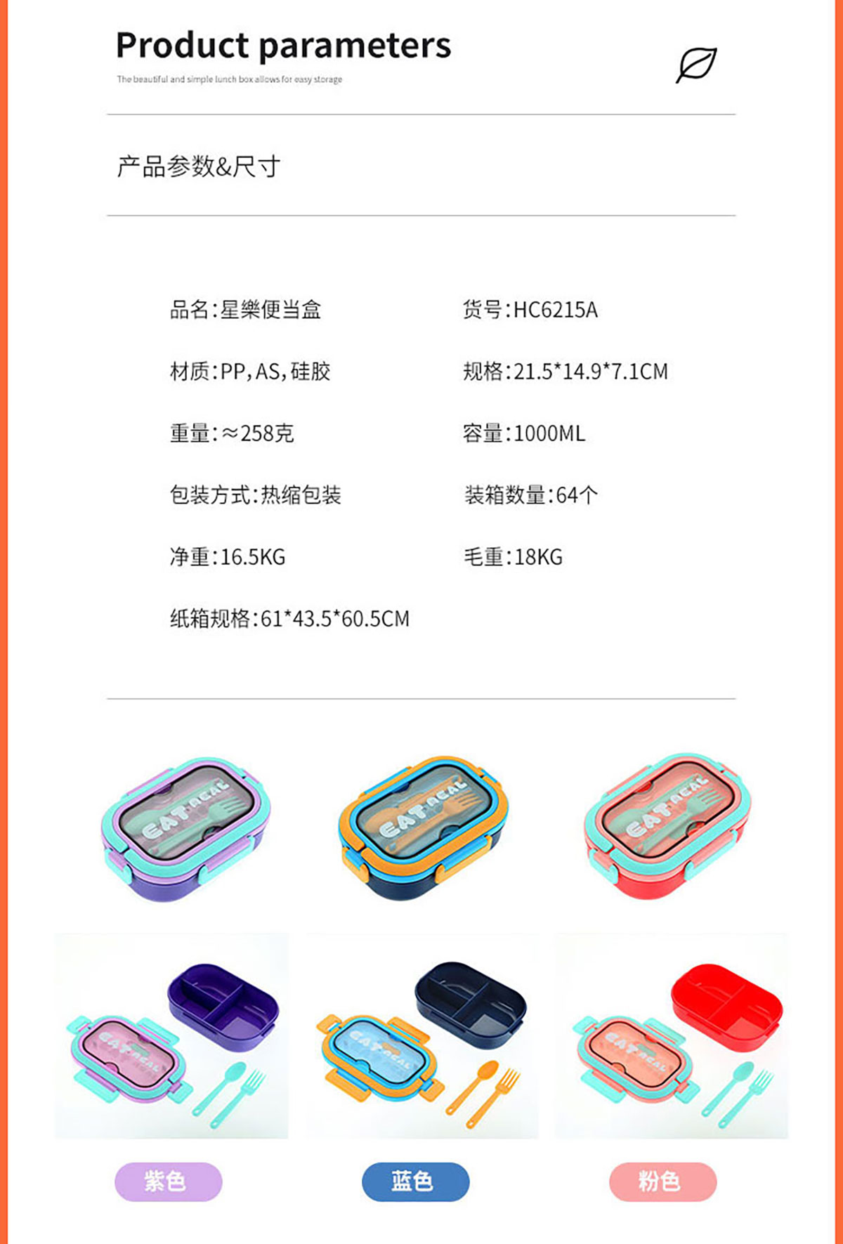 Size: SWY-HC6215A(三格PP款):215*149*71mm/1000ml