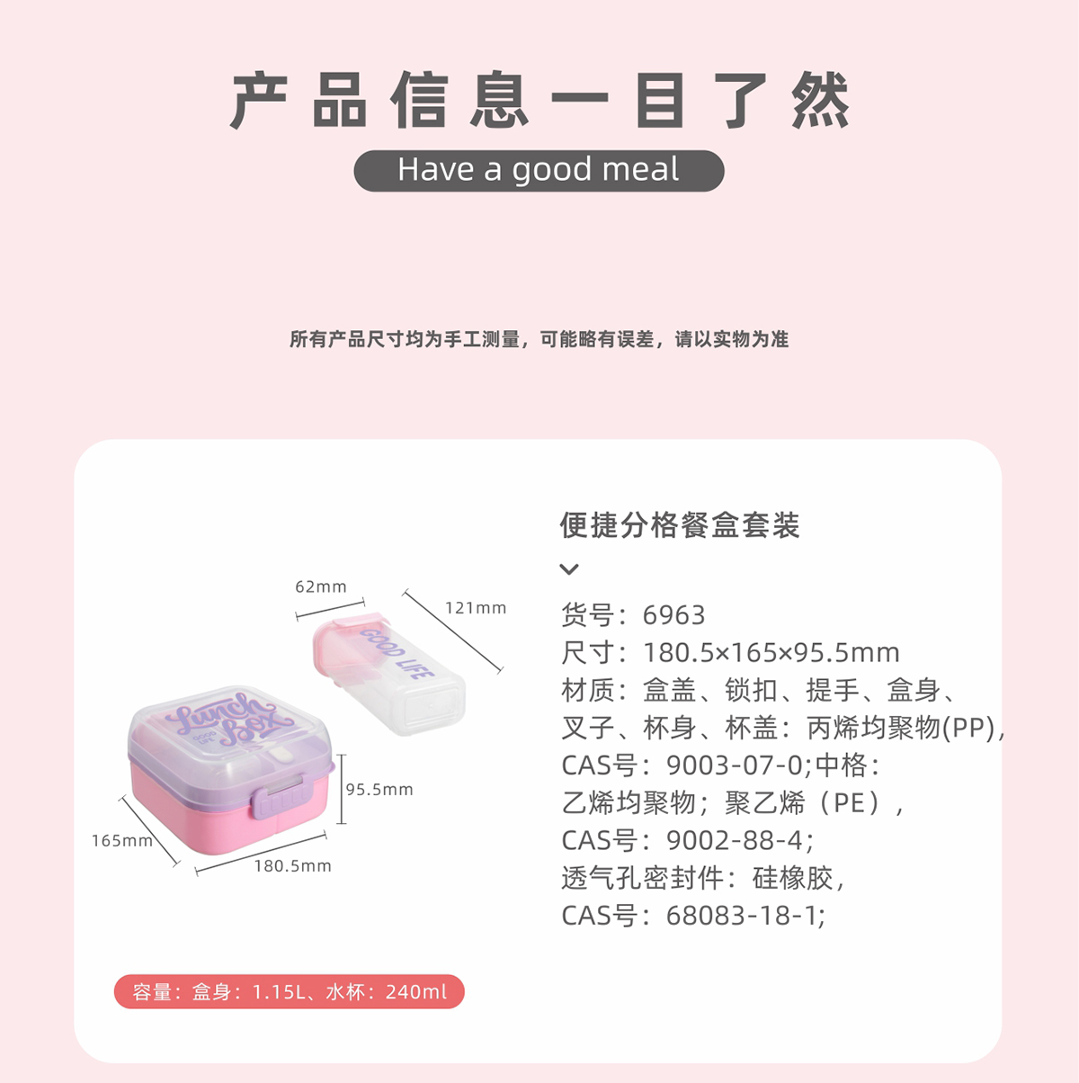 Size: 水杯:62*121mm 飯盒:180*165*97mm