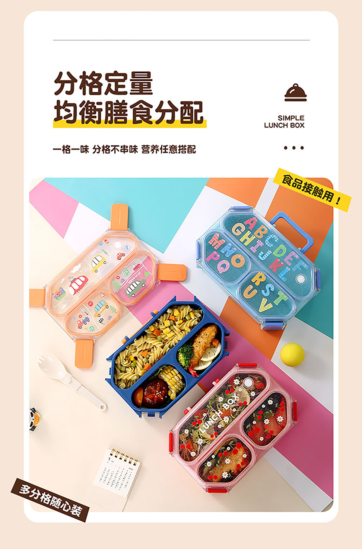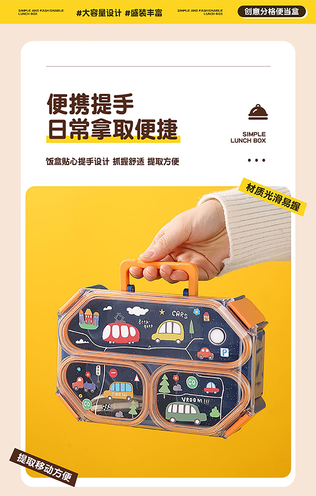 UV手提獨(dú)立密封長(zhǎng)方形塑料兩格980ml/三格900ml餐盒 (配PP折疊叉勺)