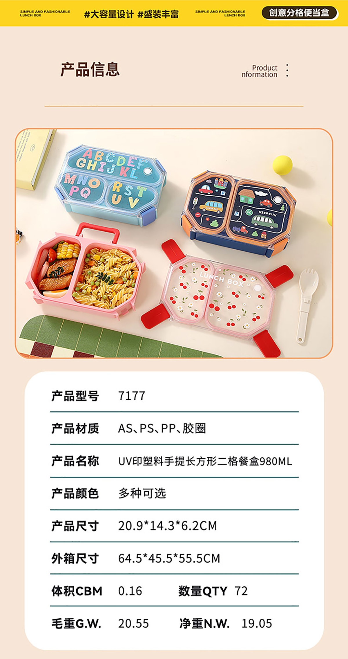 Size: AQX-7177(兩格):207*136*85mm/980ml