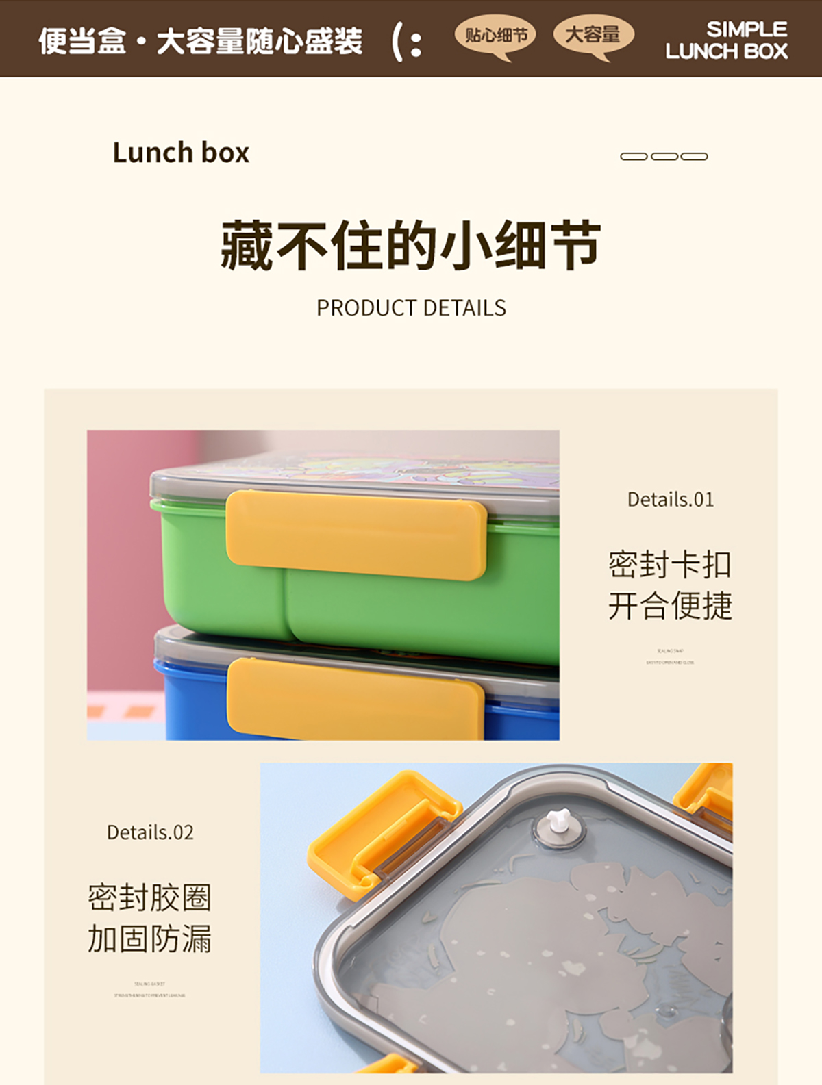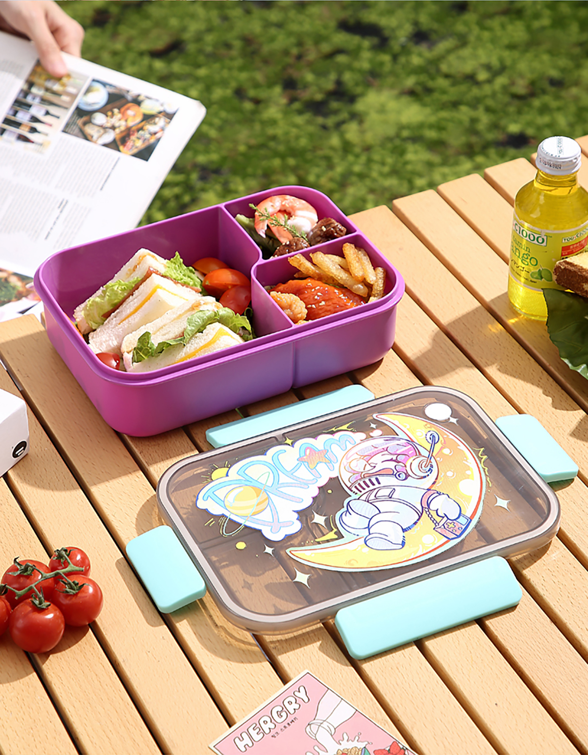 卡通透明蓋分格飯盒1450ml