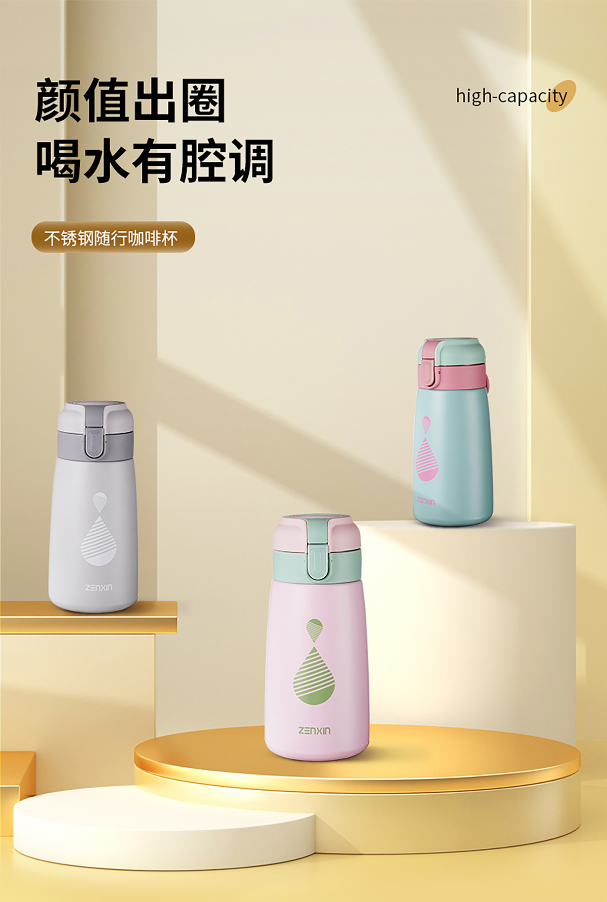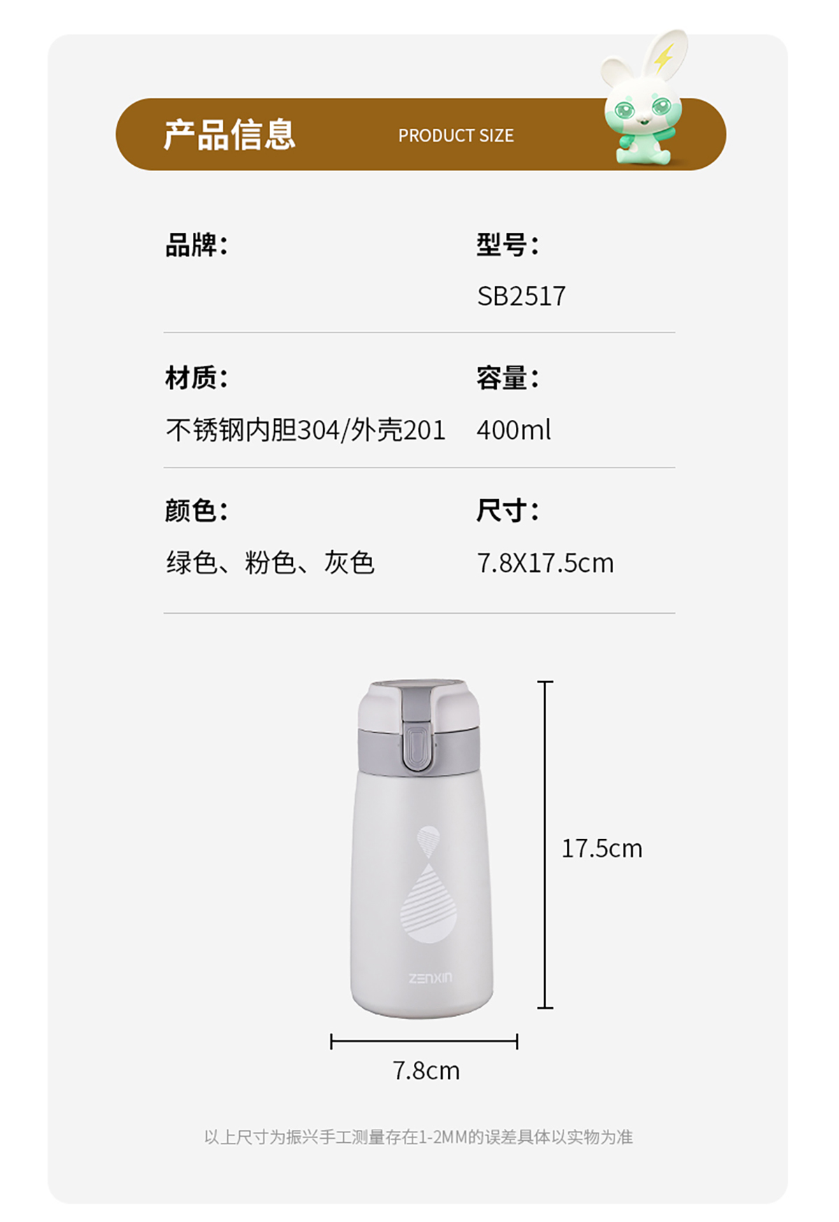 彈蓋不銹鋼保溫杯(400ml)